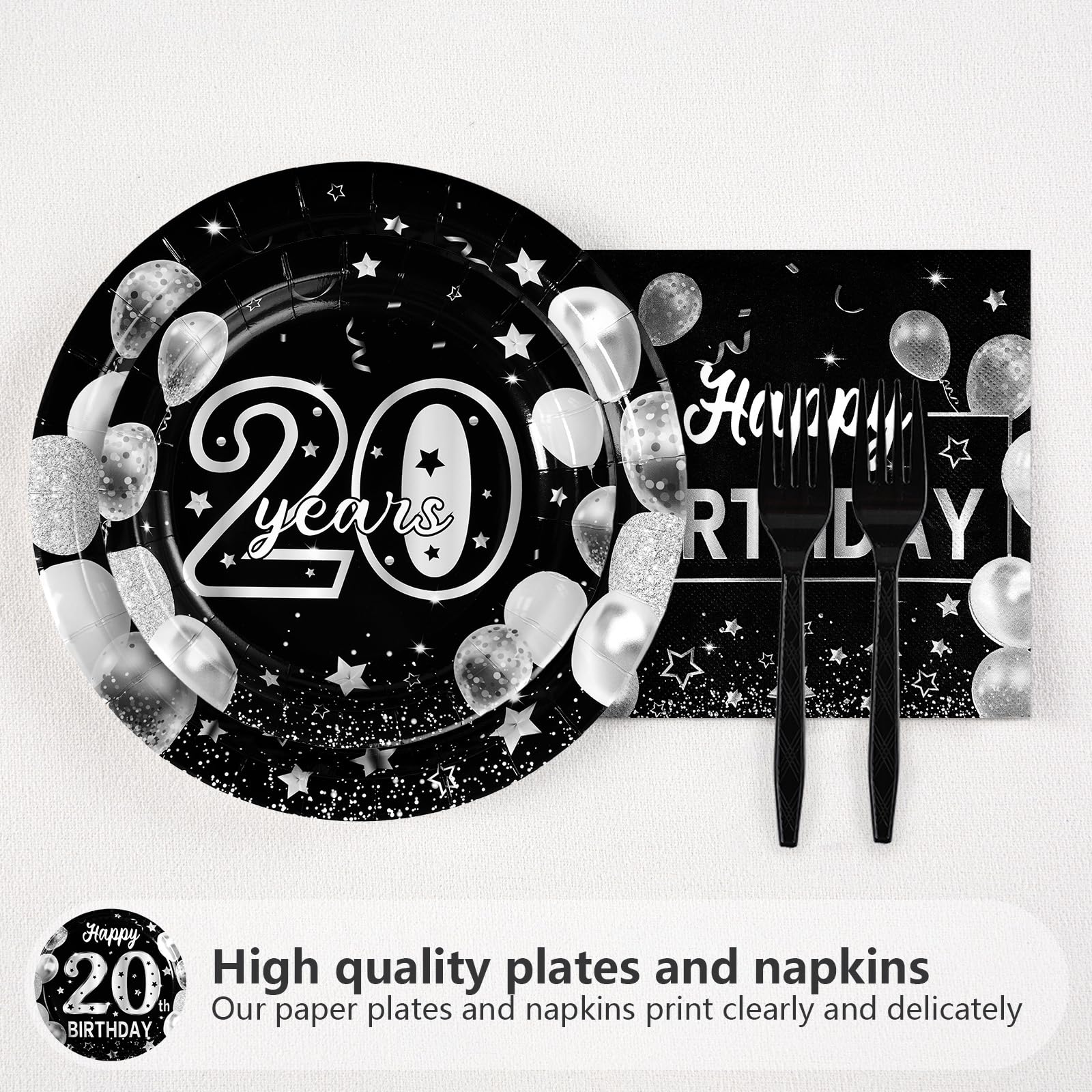 High-Quality Materials‌: Crafted from premium paper and plastic, our 20th tableware set is both sturdy and reliable. The happy 20 black and silver plates are heat-resistant and designed to withstand the weight of a variety of dishes, ensuring a worry-free dining experience. The twentieth birthday napkins are tear-resistant, ensuring they'll hold up throughout the party. Our black forks are also made of high-quality plastic, providing a smooth and comfortable dining experience