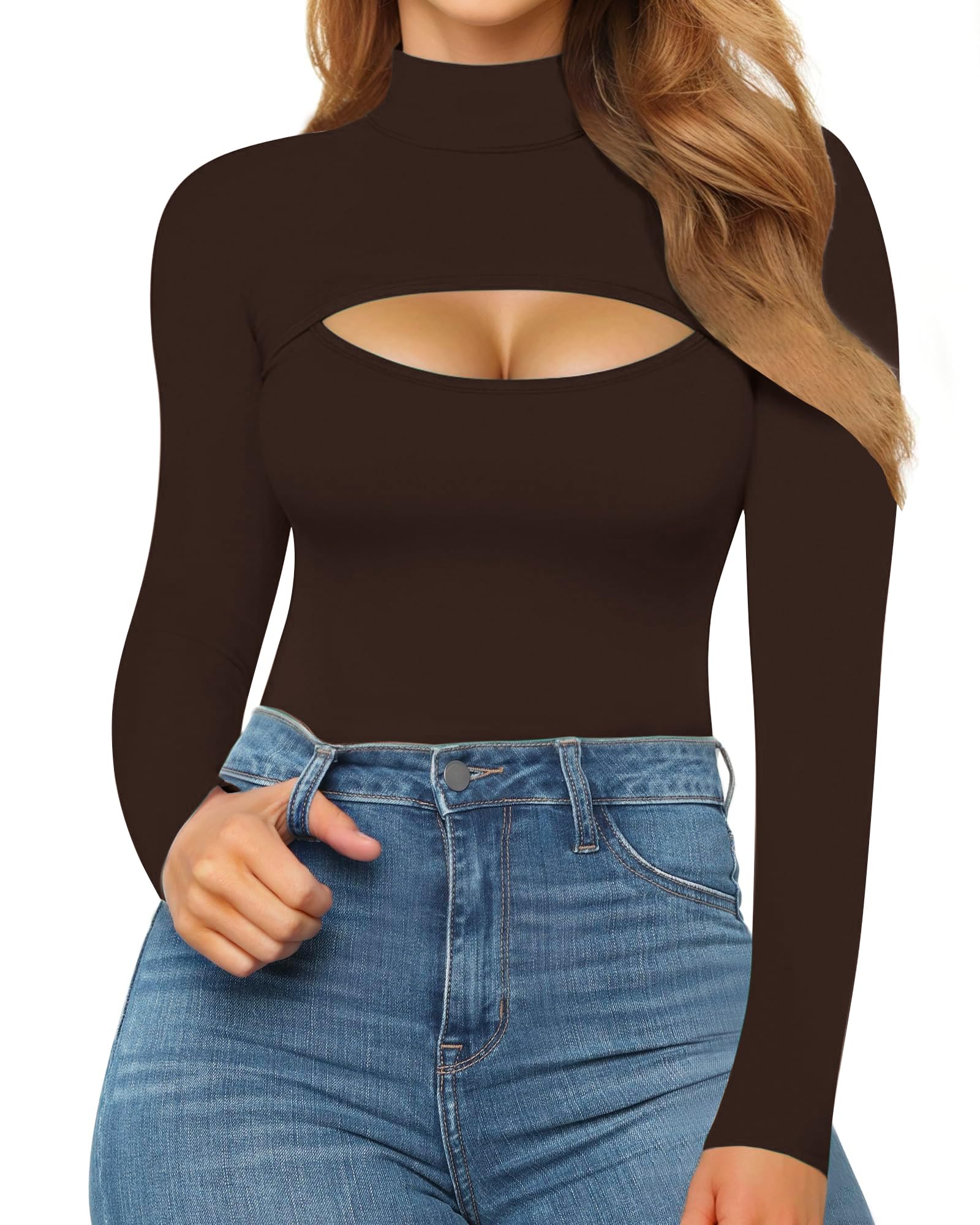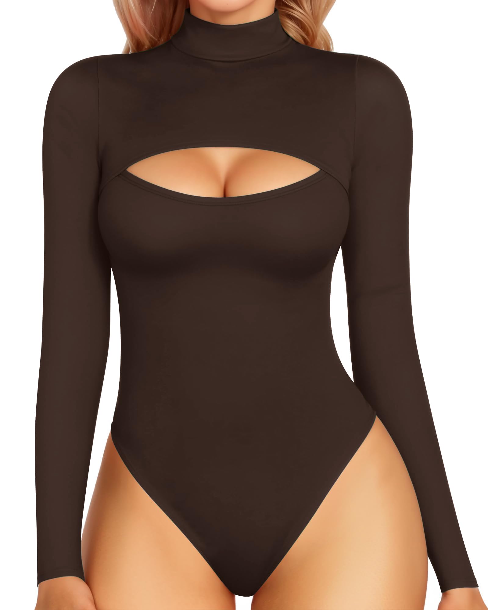 Styling: Long sleeve bodysuit boast a stretch-fitted style with a mock neck and cut out detailing, offering a slim fit and exuding a casual yet graceful fashion vibe, easily paired with pants, shorts, jeans, skirt, and more