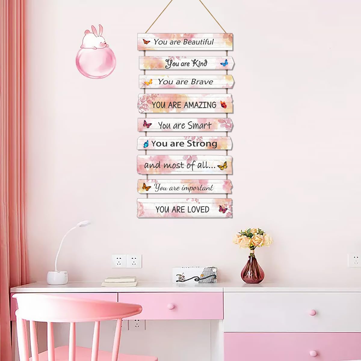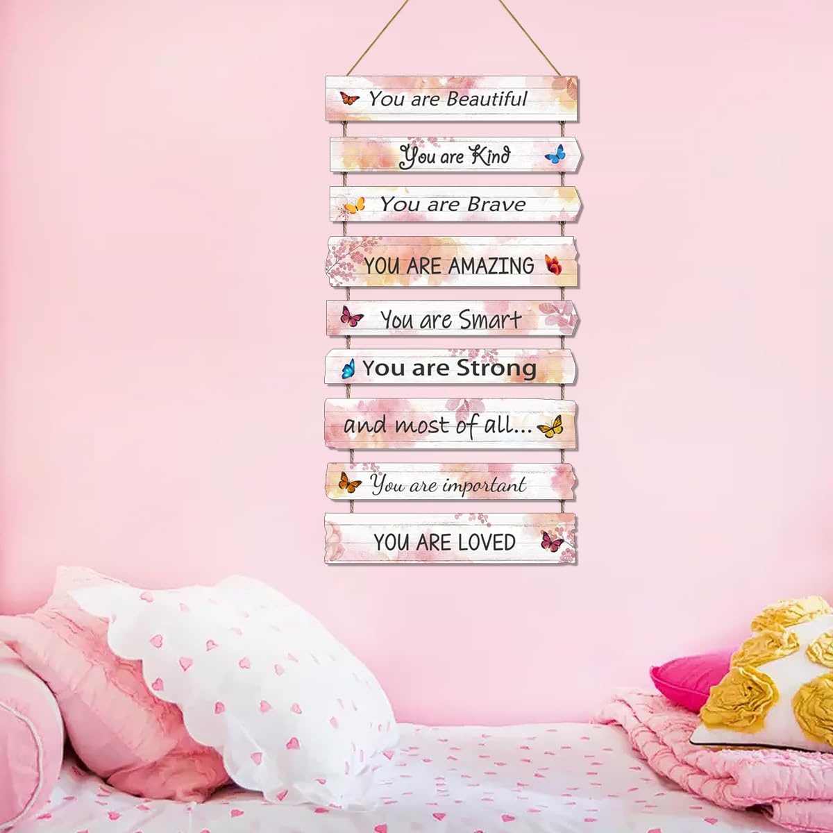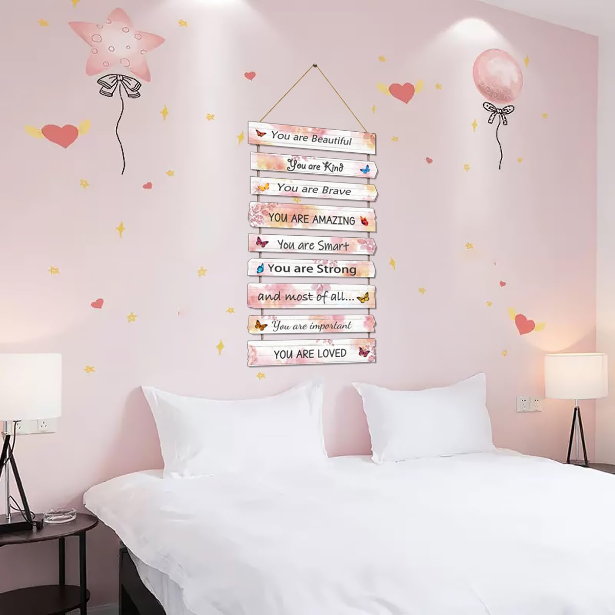 PINK THEME DESIGN: The purple room decor is printed with many warm and inspiring motivational words, [You are Beautiful, You are Smart, You are Important, You are Kind, You are Strong, You are Brave, You are Amazing, AND MOST OF ALL..., YOU ARE LOVED], which quietly encourage people, great for kids, teen girls, baby girls, toddlers, women.
