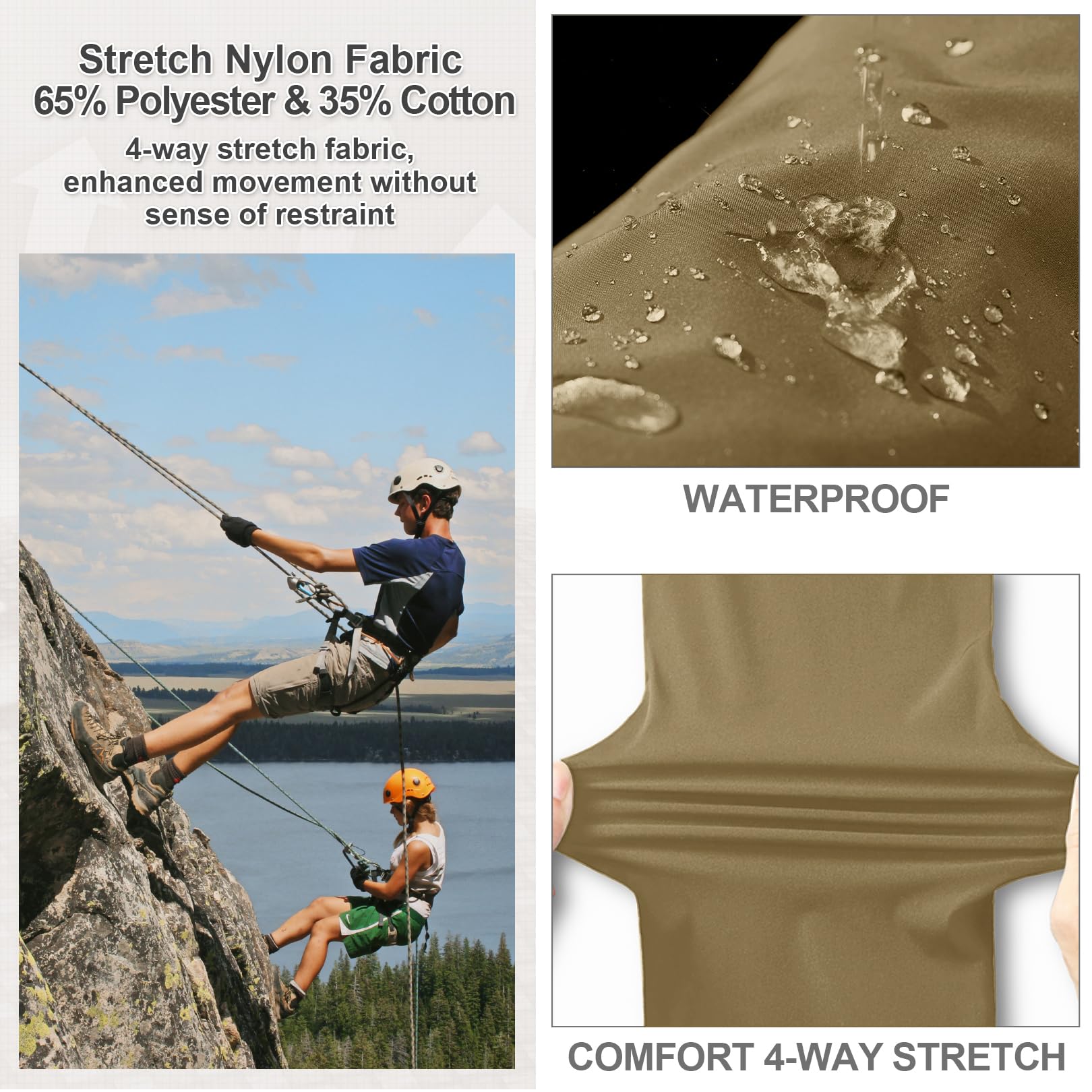 Stretch Casual Pants for Men: Lightweight quick dry nylon keep your dry all the time, 4-Way stretch spandex enhanced hiking movement without sense of restraint. Mid and high rise,3D cutting camping pants men suitable for casual and outdoor recreation wear, such as hiking, travel, fishing, riding, walking, camping, mountaineering, hunt, climb, etc.