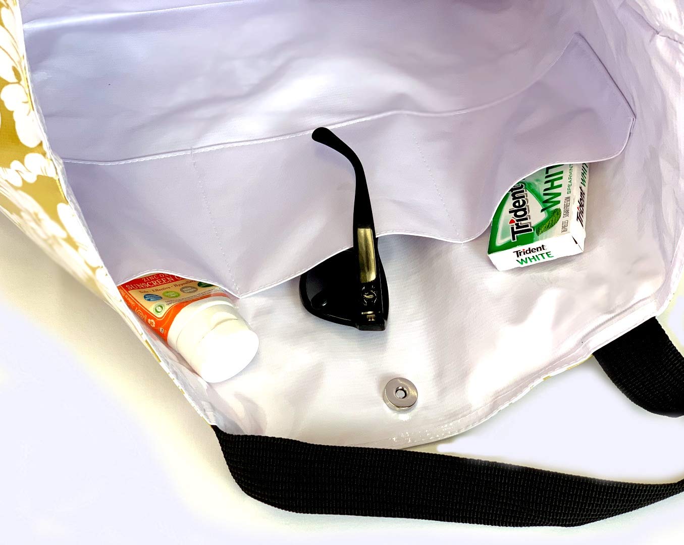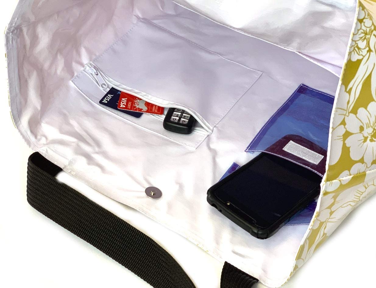 **Eco-Conscious and Durable**: Crafted from premium, up-cycled oilcloth, our tote is not only waterproof and stain-resistant but also supports a greener planet. Enjoy a fashion-forward tote that stands the test of time and use, without the environmental footprint of plastic bags.