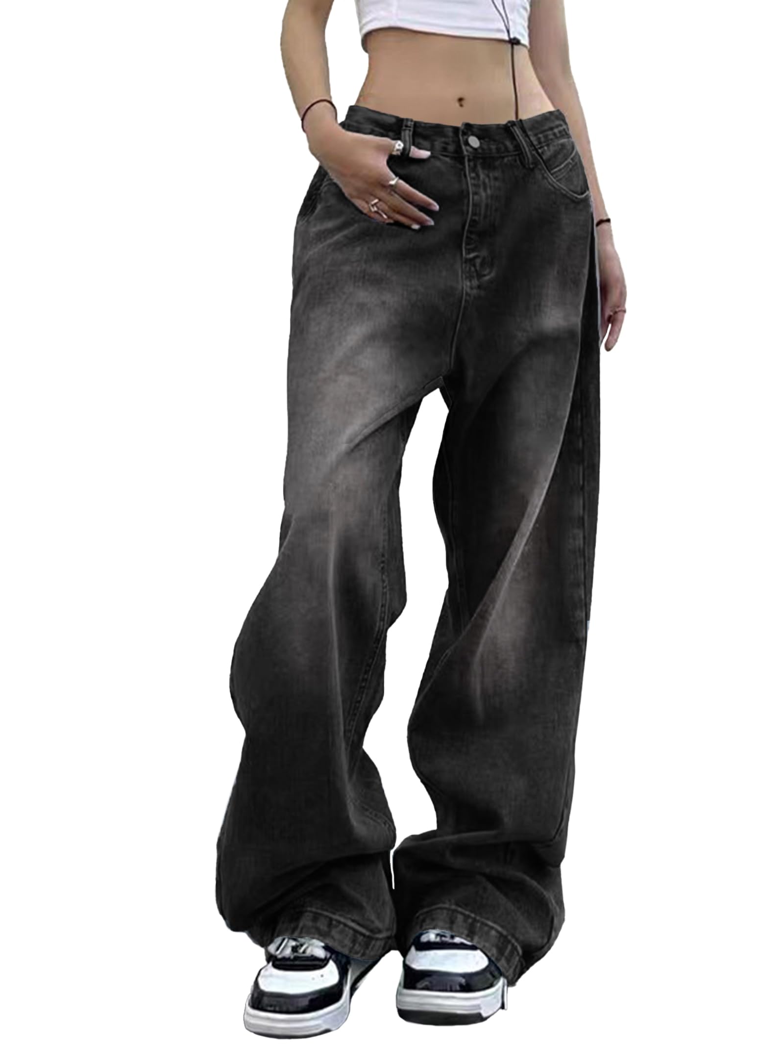 Vintage boyfriend jeans come with 4 traditional pockets. Intentionally distressed design in the pockets' edges, providing these women's jeans with both style and function. Y2k baggy jeans with zip fly, button closure and belt loops for your ease of use.