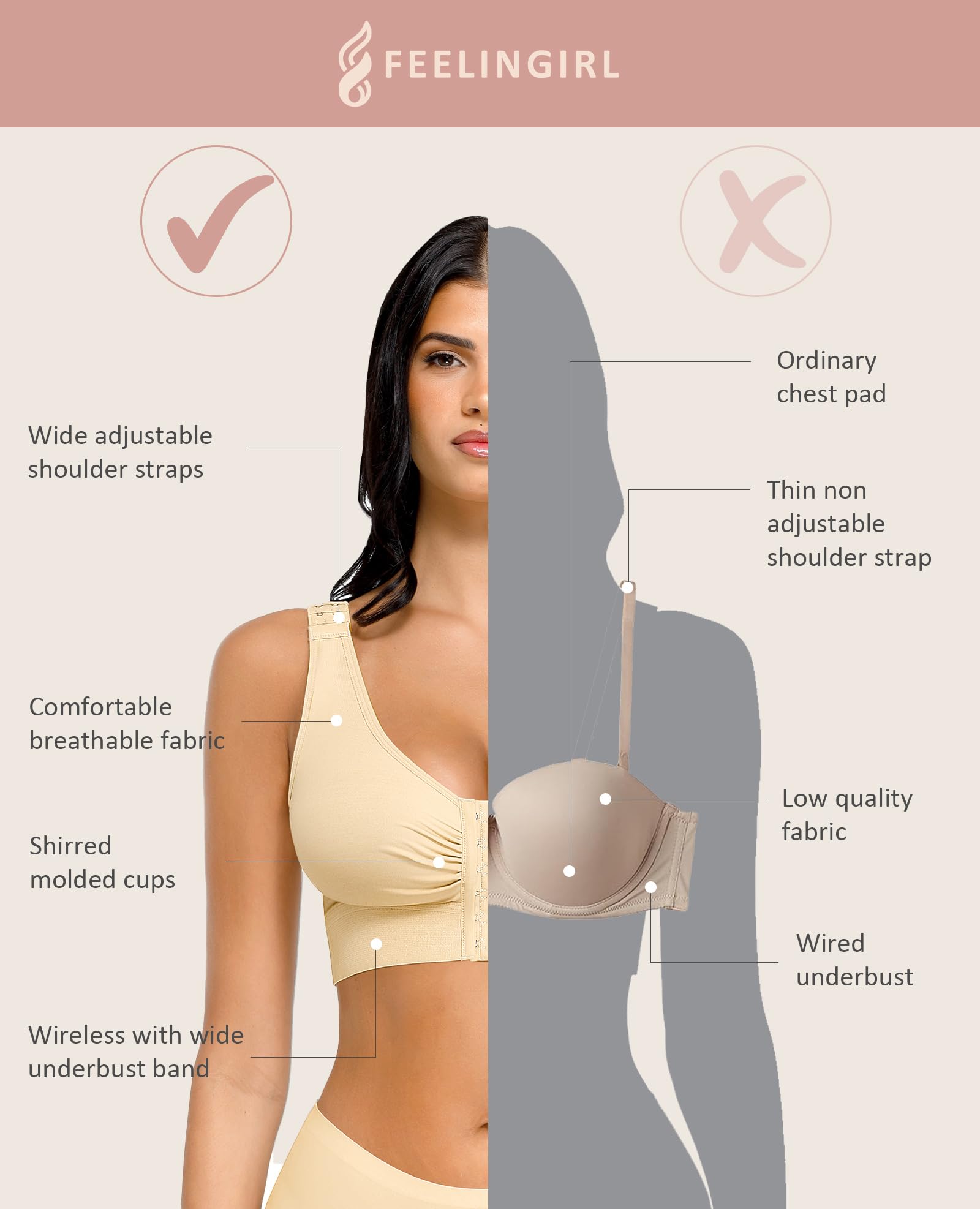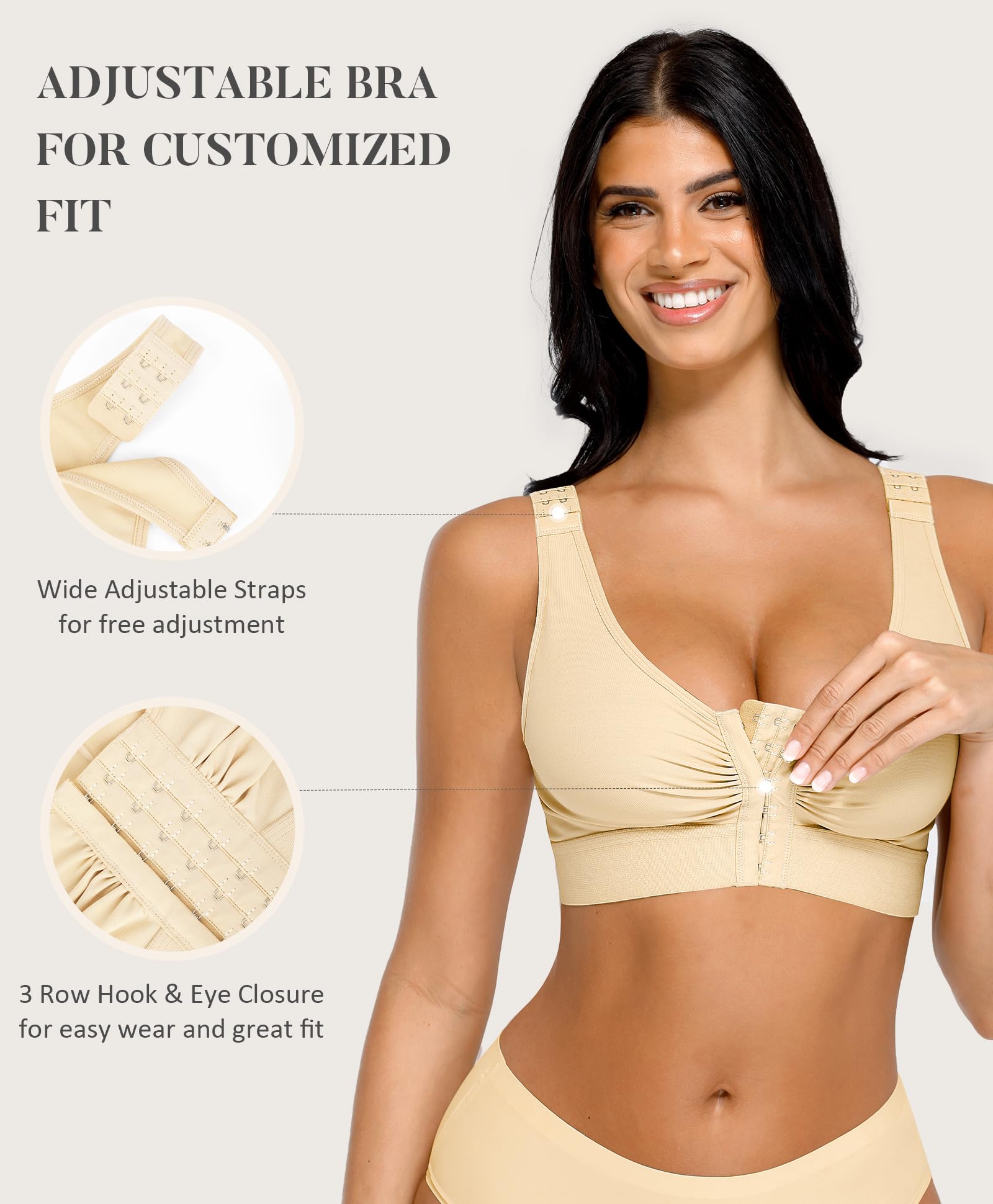 EASY ADJUSTMENT: This women's front closure bra can be adjusted in multiple ways to accommodate various cup sizes, including three rows of hook-and-eye closures in the front and shoulder closures for full adjustability. It is easy to wear, and you can adjust the compression level as needed at any time.