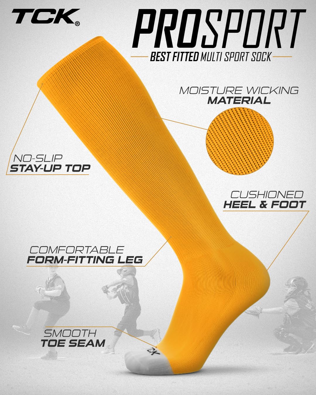 CLASSIC MULTISPORT ATHLETIC SOCKS: The Prosport is the gold standard for the classic athletic tube sock. This iconic sock has been produced for over a decade and has graced the feet of many top athletes. Hitting just below the knee, this sock is ideal for baseball, softball, football, field hockey and more! Available in over 20 team colors and 5 precise sizes, the Prosport is the sock to elevate your game to the next level.