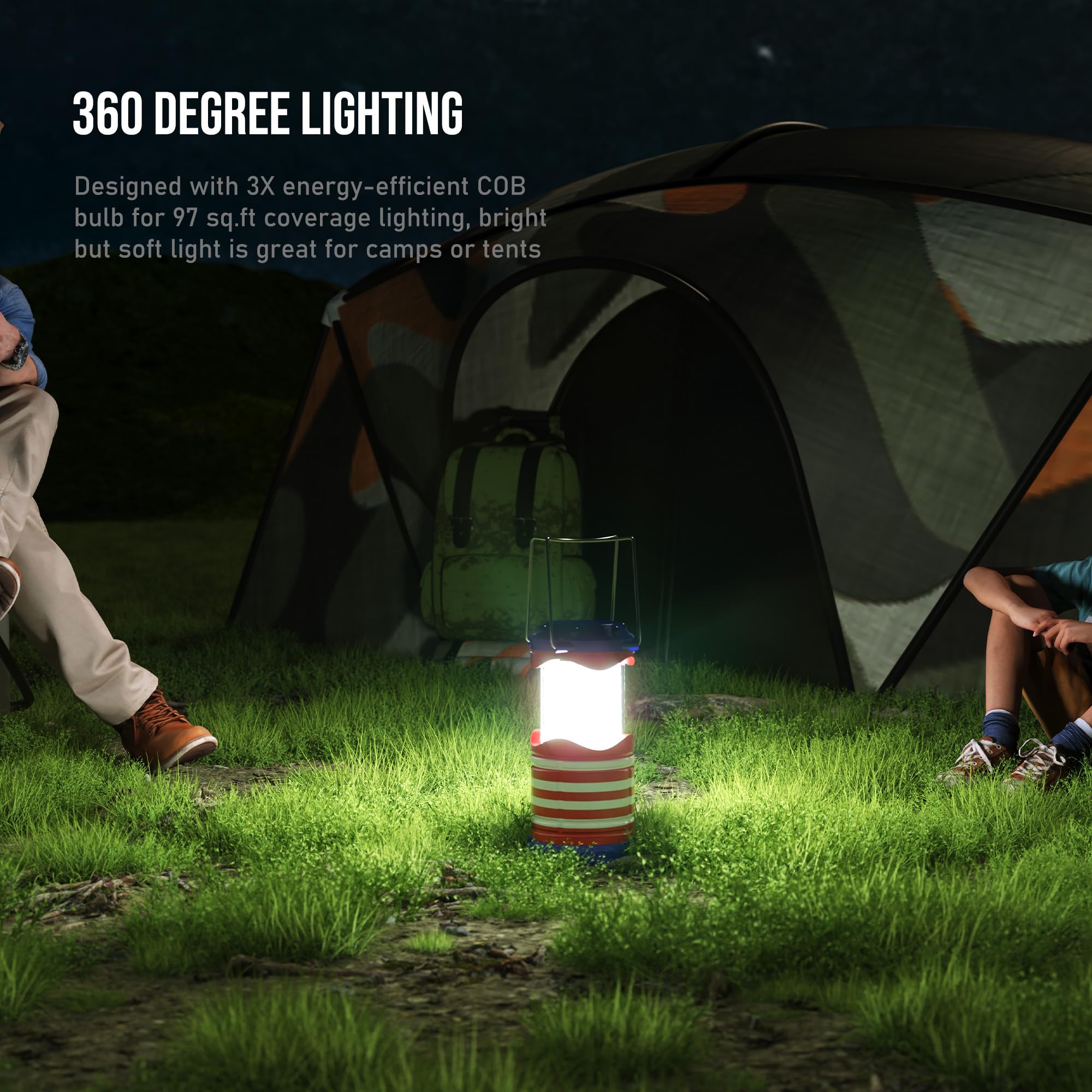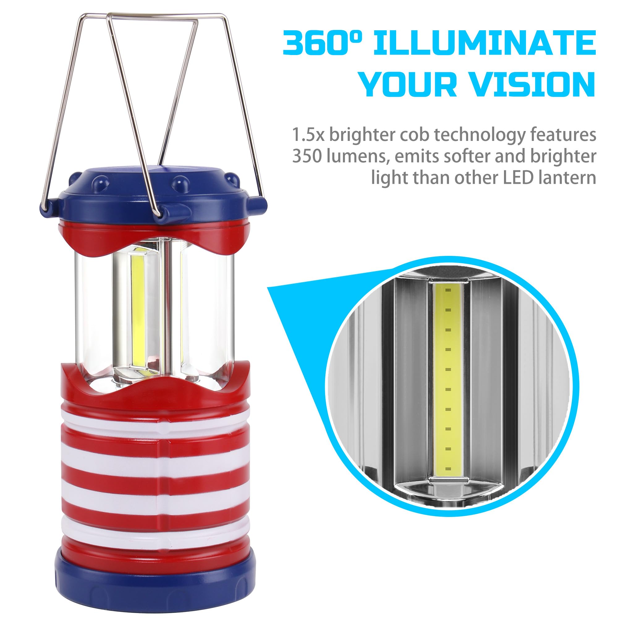 ULTRA BRIGHT & SAFE: Designed with 30 energy-efficient LED for 360 degree lighting (97 sq.ft coverage), the latest COB technology features 350 lumens, emits softer and brighter light than other LED lantern; Use 3 AA batteries (not included)