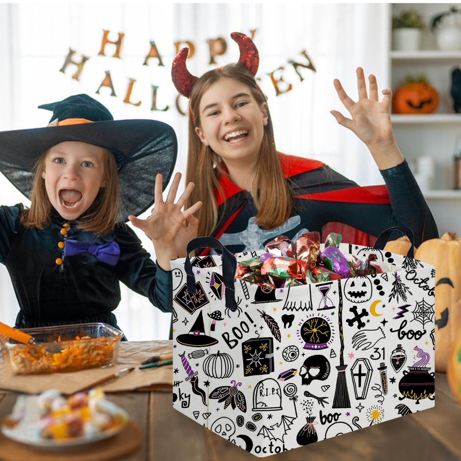 🎃【STORAGE BIN SIZE】:The size of the storage basket is 15L"x10"W x 9"H inches.Perfect for all kinds of rooms, Such as: closet, Bathroom, Bedroom, Toy room, nursery, cloakroom, Balcony, Pet room, Anywhere you need it.
