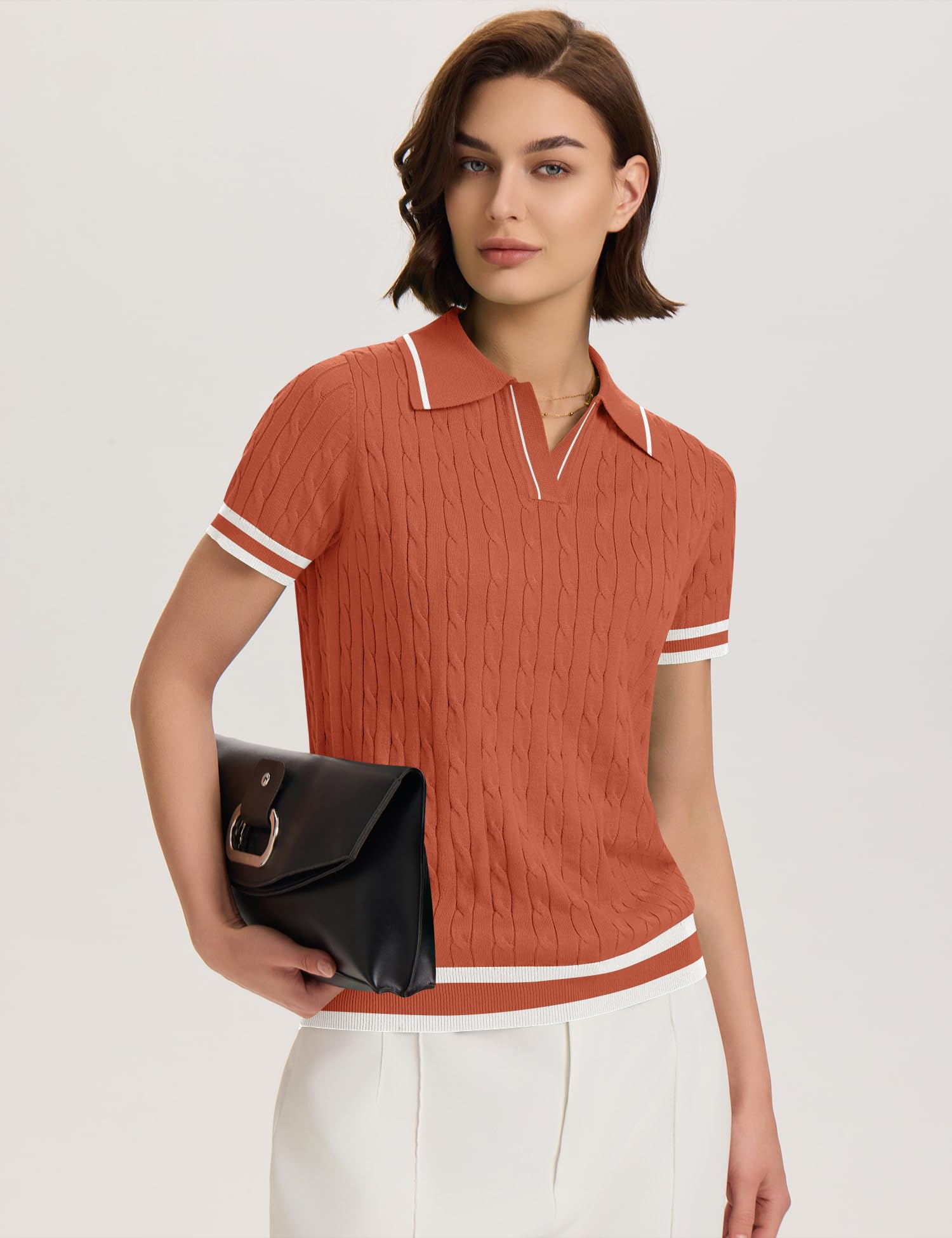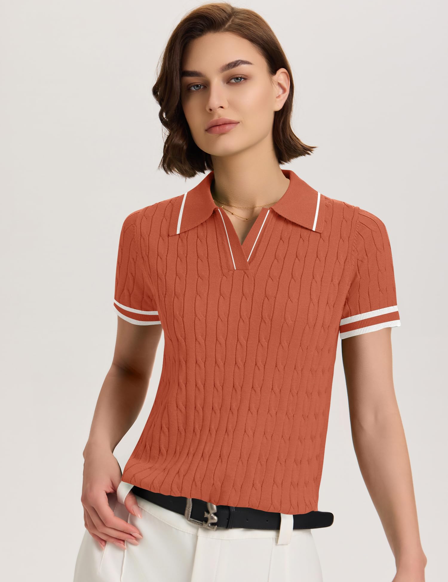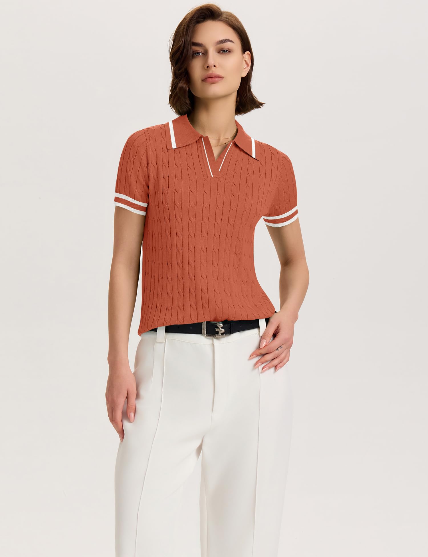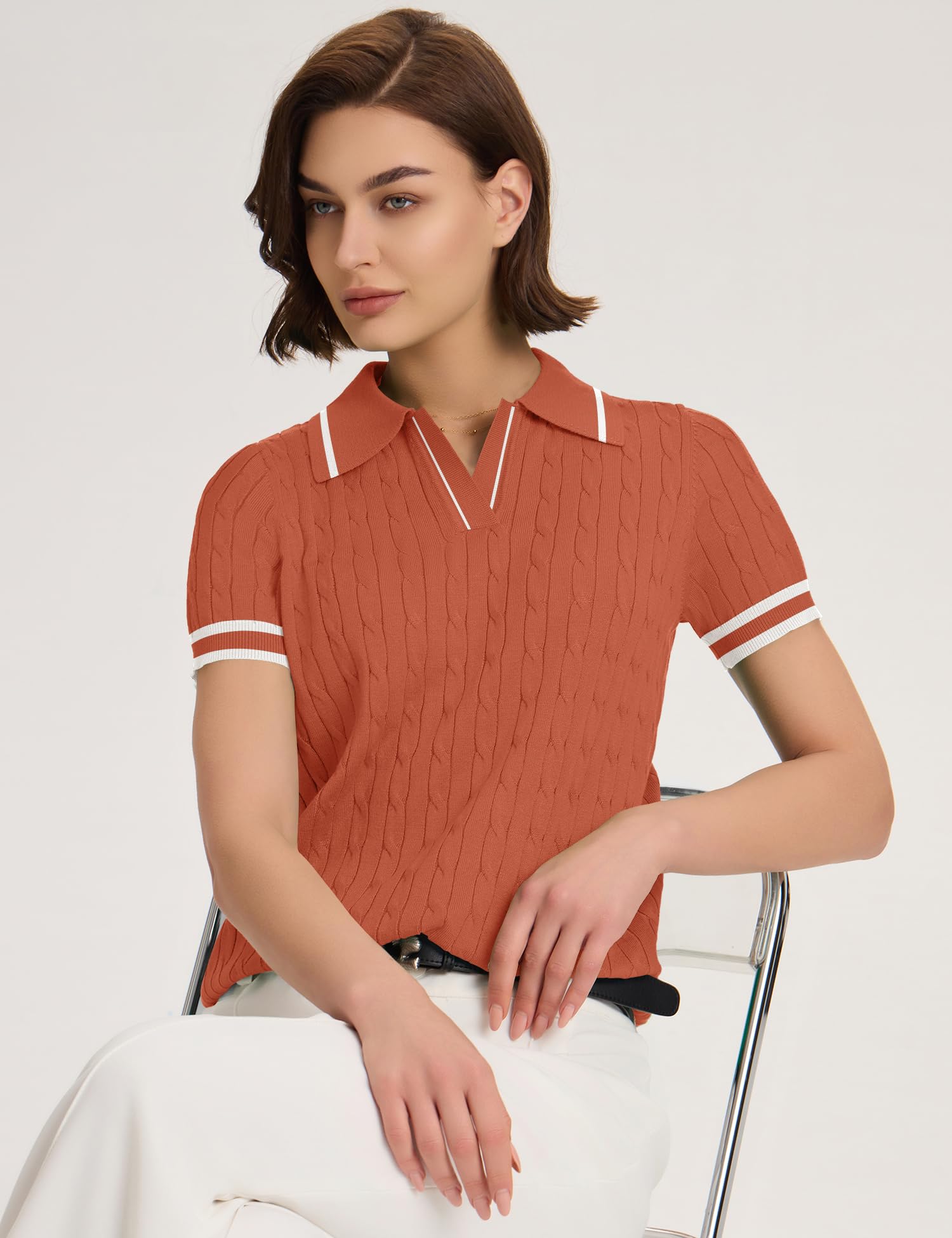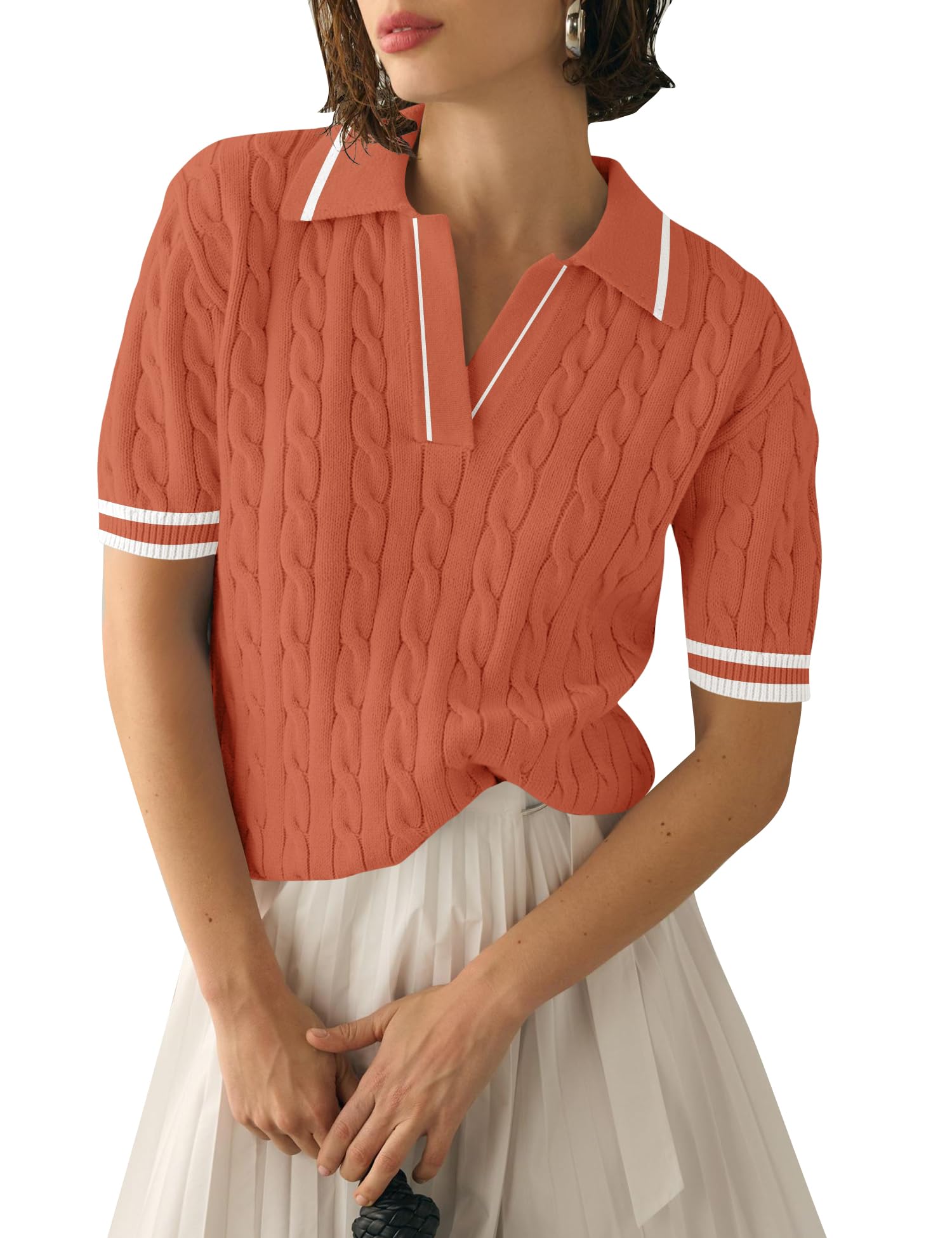 【Occasions】: This flattering cable knit shirts are perfect for daily casual, business meetings, home, shopping, dating, office, school, vacation, and any outdoor events. The short sleeve collared sweaters will keep you charming through spring, summer.