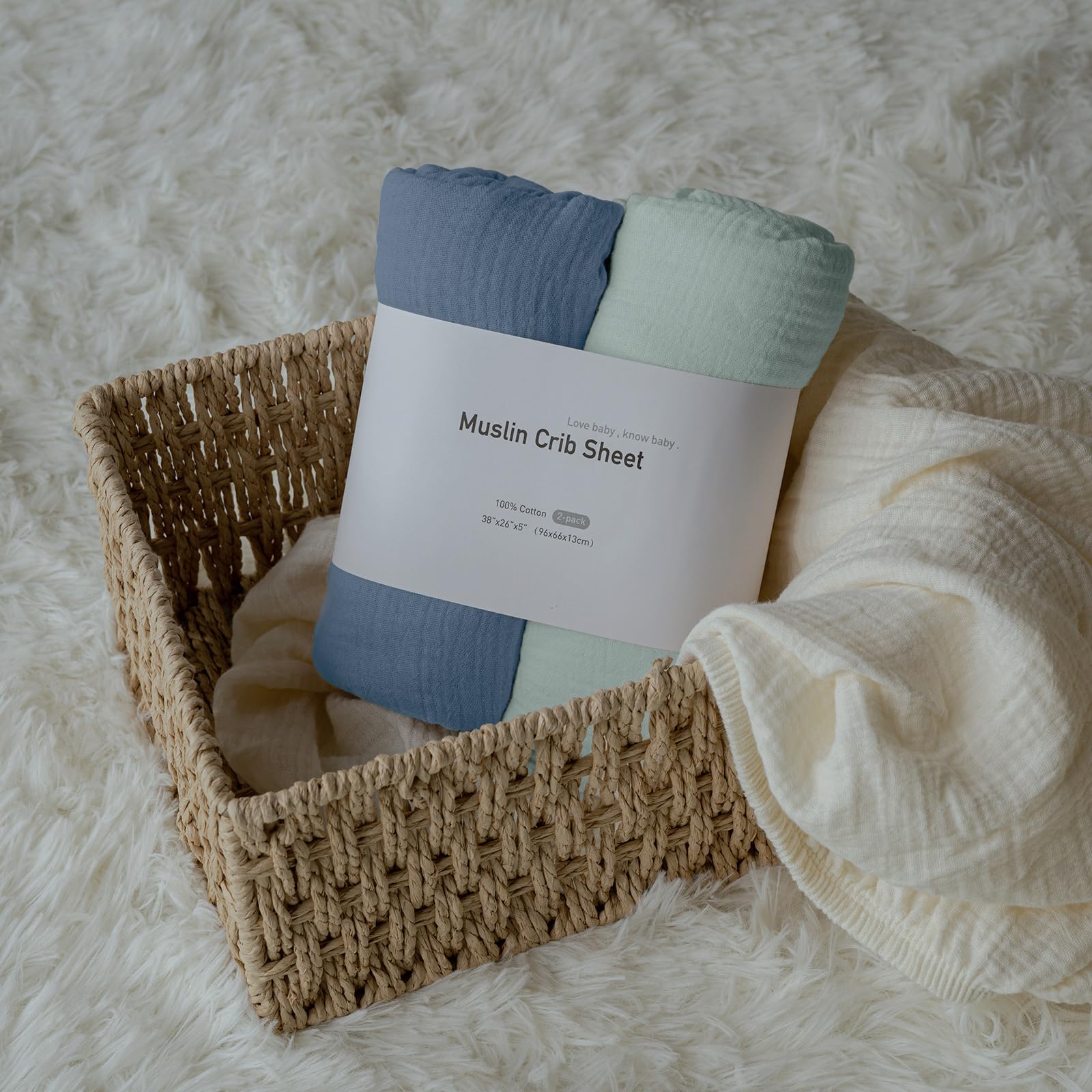 ESSENTIALS BABY SHOWER GIFT: Each Mini Crib Sheets set are well made and neatly packaged. These durable soft muslin Mini Crib Sheets can be a practical and thoughtful gift for baby shower, baby registration, Christmas, home heating or any special gift giving occasion.