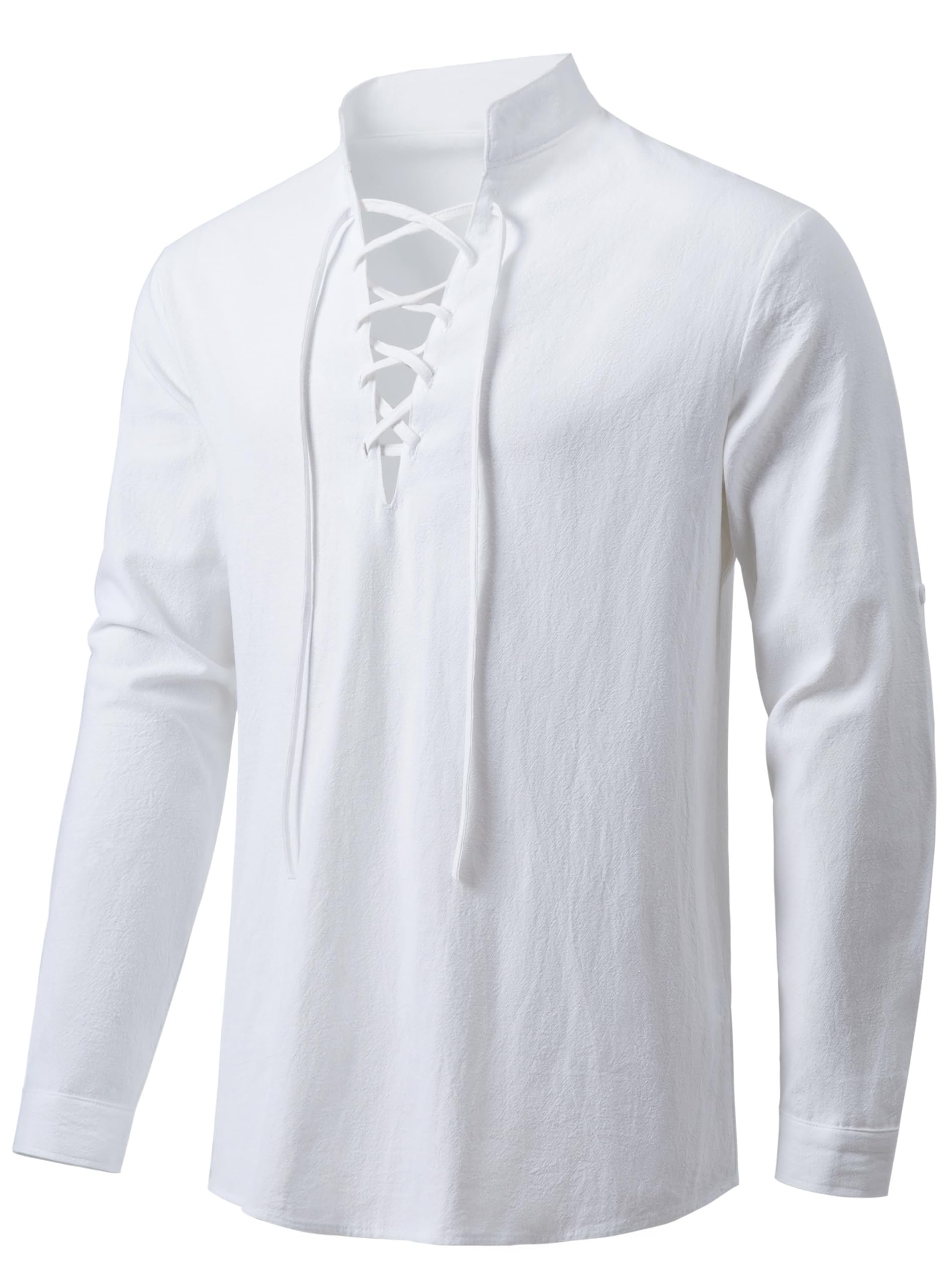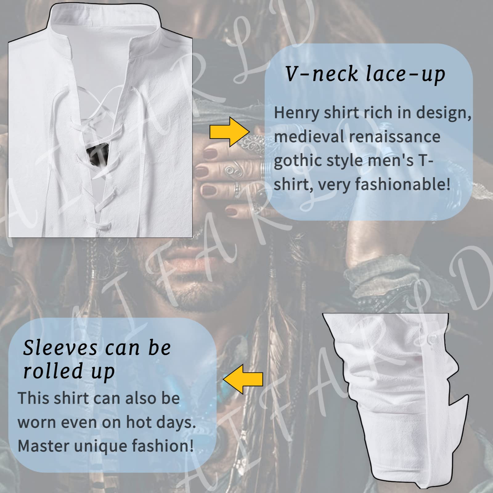 LACE UP DESIGN: The medieval renaissance shirt has a novel design with a laced design. The drawstring design makes the overall look more retro. And this shirt can be matched with any pants: for example, casual pants and white shoes.