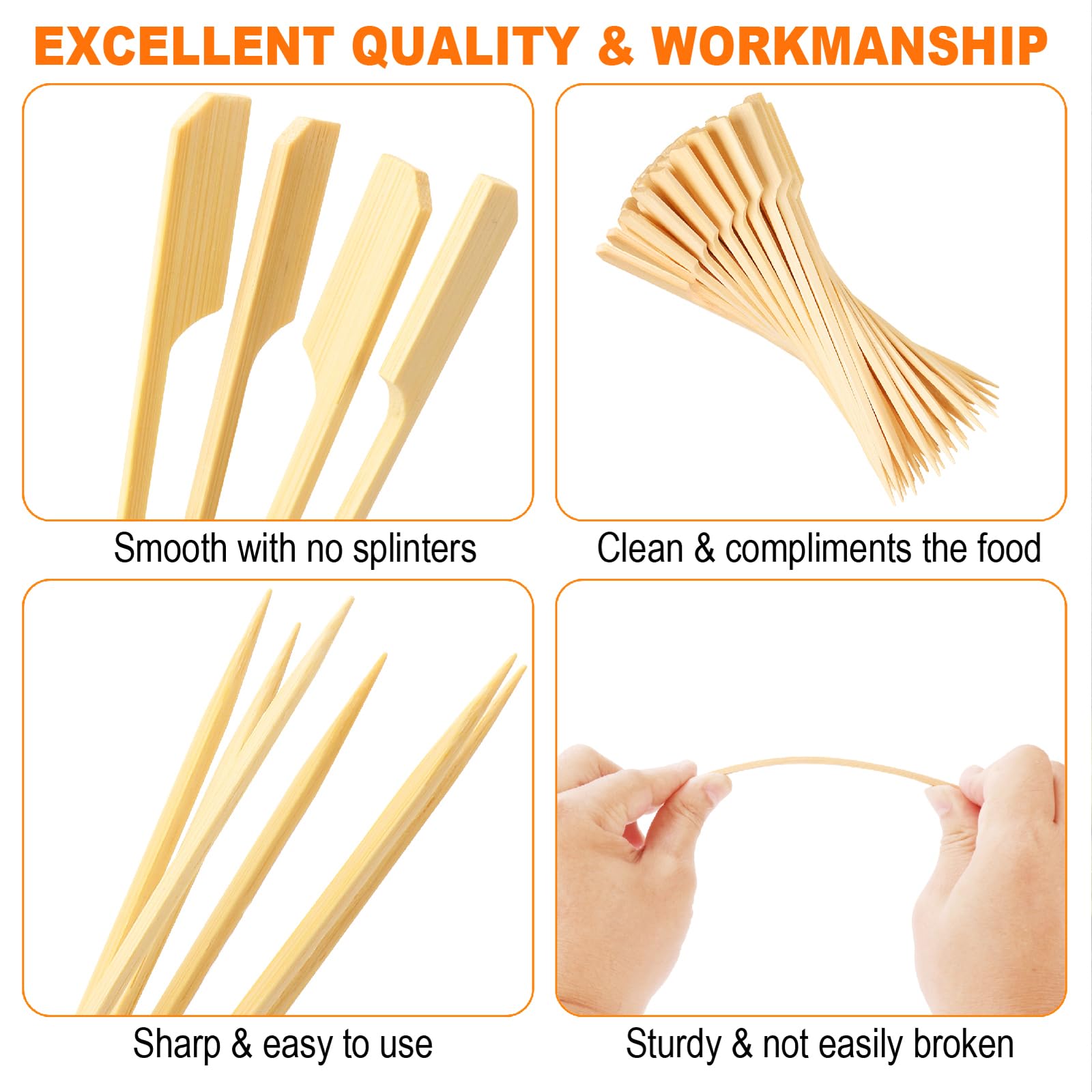 STURDY & DURABLE: Crafted from premium bamboo, our cocktail picks are designed to ensure strength and durability, with sharp tips that effortlessly pierce through food. Most importantly, they are resistant to splitting or breaking easily, while their smooth, polished surface ensures a comfortable grip for you and your guests, with no worries about annoying splinters.