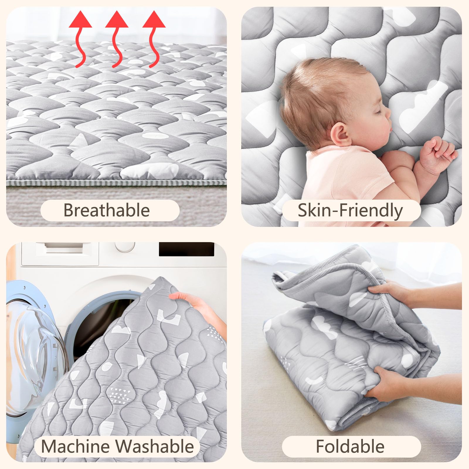 [Easy to Clean]: Our play mat is made of quick-drying fabric and is machine washable, whenever the mat is stained just simply throw it into the laundry machine and it would be clean as new