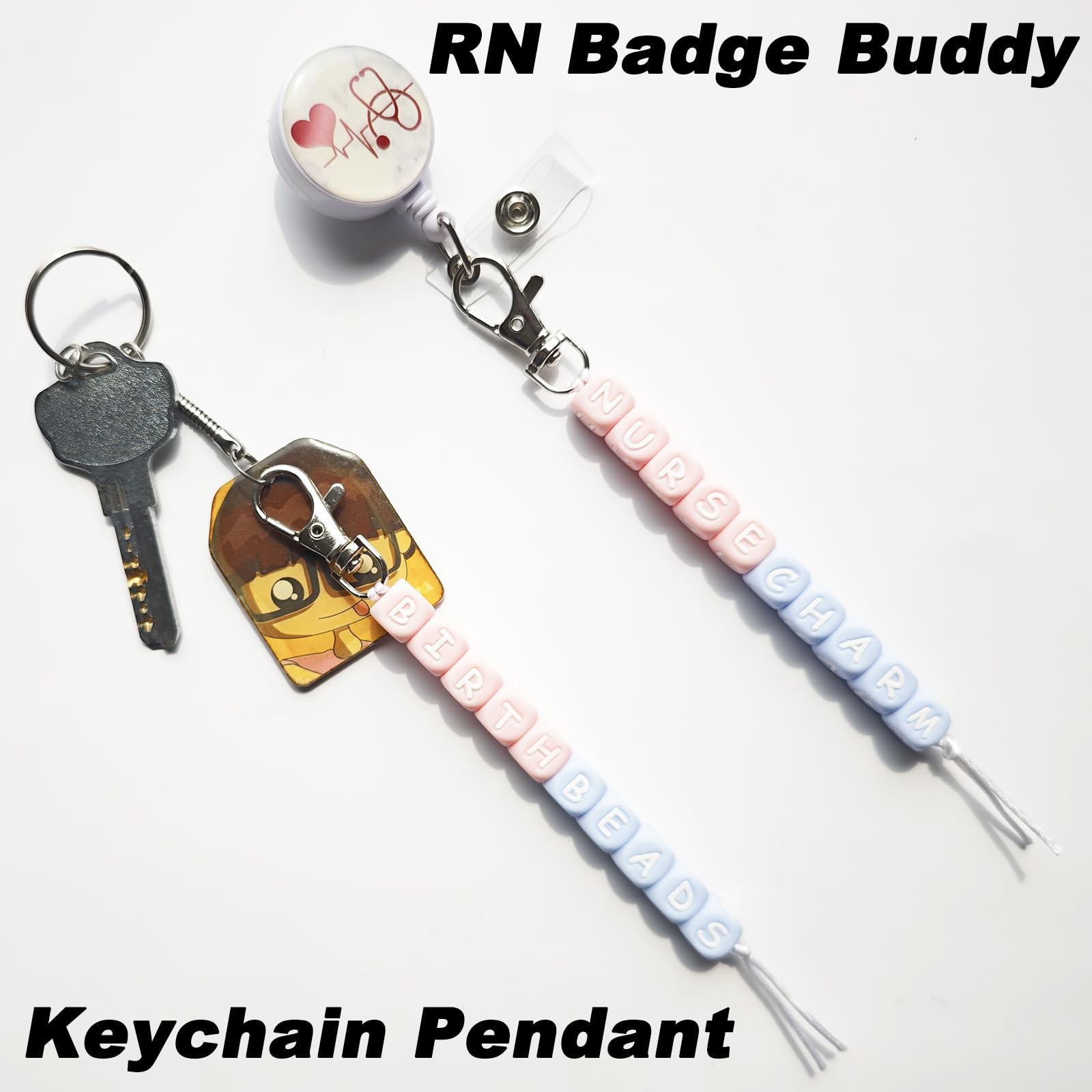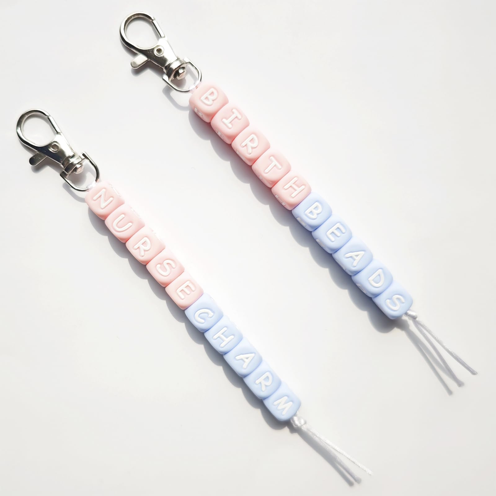 L&D Badge Reel Accessories: Package includes two strands of adorable hand-assembled order of cervical dilation beads, features the words "BIRTH BEADS" and "NURSE CHARM" in blue and pink beads, a cute badge reel accessories nursing item; The ornaments has a lobster clasp for easy clipping to your badge reel