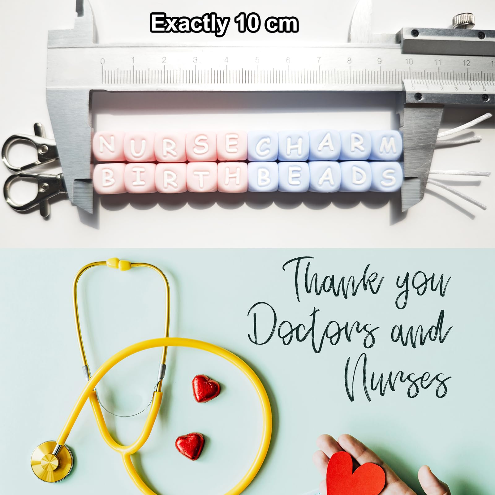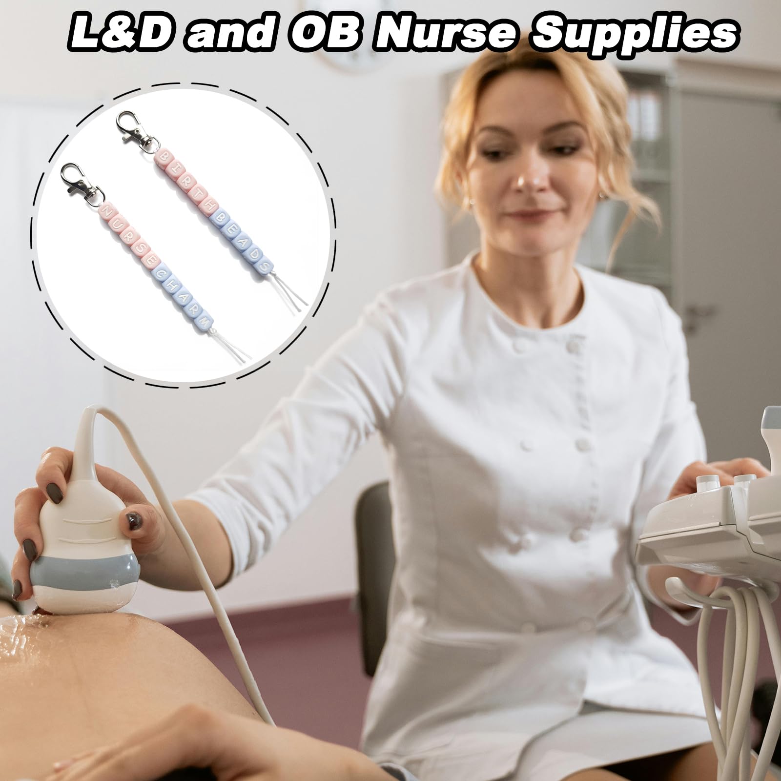 10CM Cervical Exam Beads Each bead measures exactly 1 cm and the entire string measures 10 cm, representing a fully dilated cervix. This visual aid tool is not only great for nurses, but can also be used to help educate patients by portraying the cervical dilation process from beginning to end. Dilation Beads for Badge Reel "BIRTH BEADS" and "NURSE CHARM" badge bead is a great tool for nurses, it can help you gauge and to help explain to patients. You can put it on your badge so it can be a physical representation for your future patients! Badge Buddy Nursing Giving you all the motivation you need to keep studying for the NCLEX, so you can wear this on your first day as an LDRP nurse. Such a handy and useful accessory, you will get lots of compliments from patients on it. Labor and Delivery Nurse Gifts A cute accessory or gift for someone. It is a very helpful tool for new labor and delivery nurses and nursing students. A great gift for nurses, nursing students, midwives, or for anyone assisting with the delivery of babies. Features: Easy to use and practical; Made of food-grade silicone; Light and long-lasting colors; Lightweight and easy to clean; Doing your job is easier with our cervical dilation beads! Package include: Two strands of hand-assembled order of cervical dilation beads, features the words "BIRTH BEADS" and "NURSE CHARM" in pink and bule beads. Warm Tips: Manual measurement, please allow slight errors on size. The color may exist slight difference due to different screen displays. Swallowing risk may exist, please keep away from people under 3 years old.