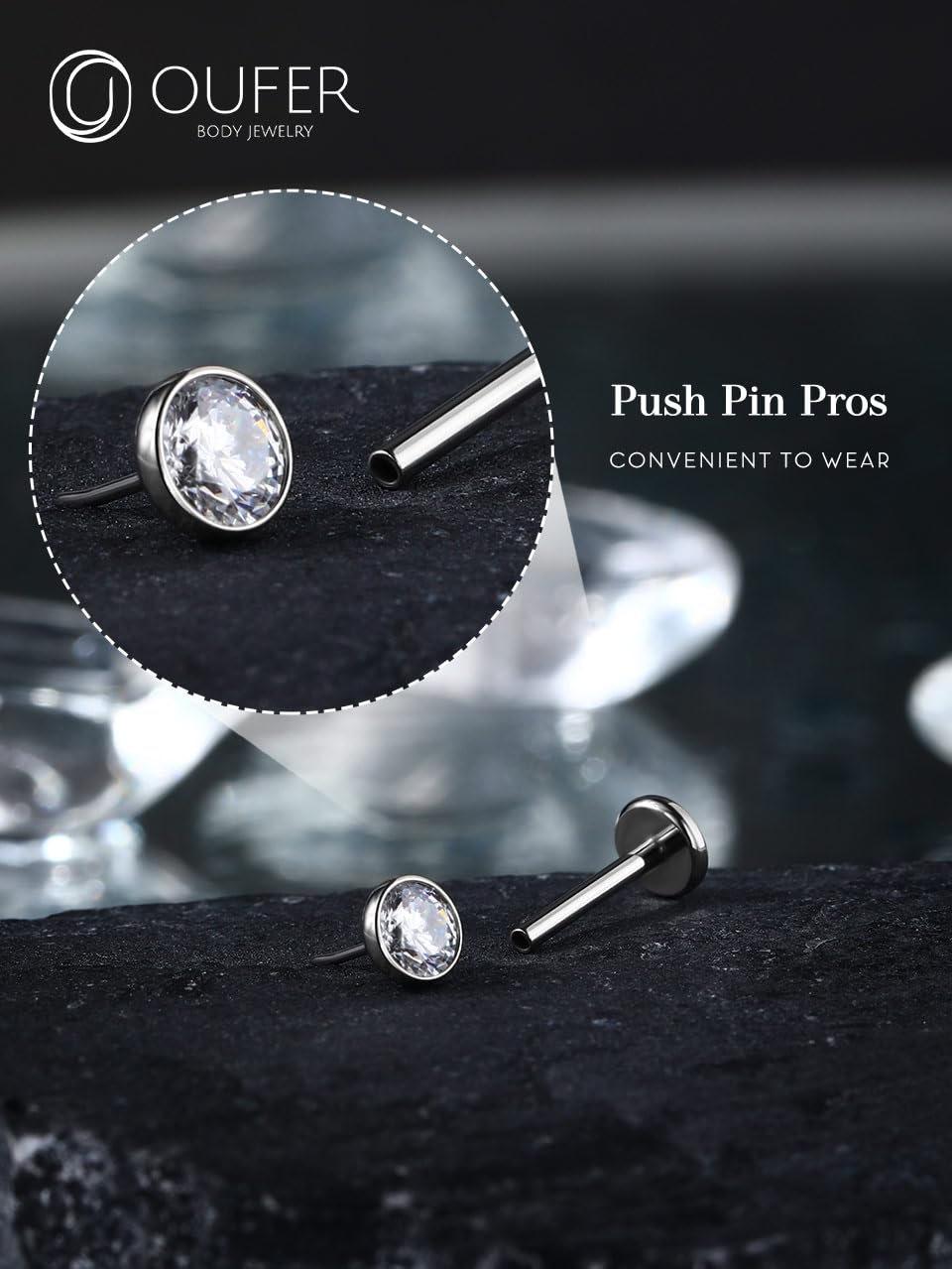 【Flat Back & Threadless Push‑In】:Secure the jewelry via a push‑in, threadless mechanism—no twisting needed—and enjoy comfort thanks to the flat back disc that reduces pressure.