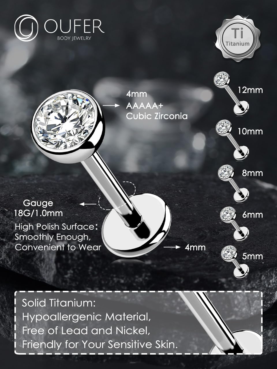 【Silver G23 Titanium Construction】:Crafted from implant-grade titanium, this stud is lightweight, corrosion-resistant, and gentle on sensitive skin.