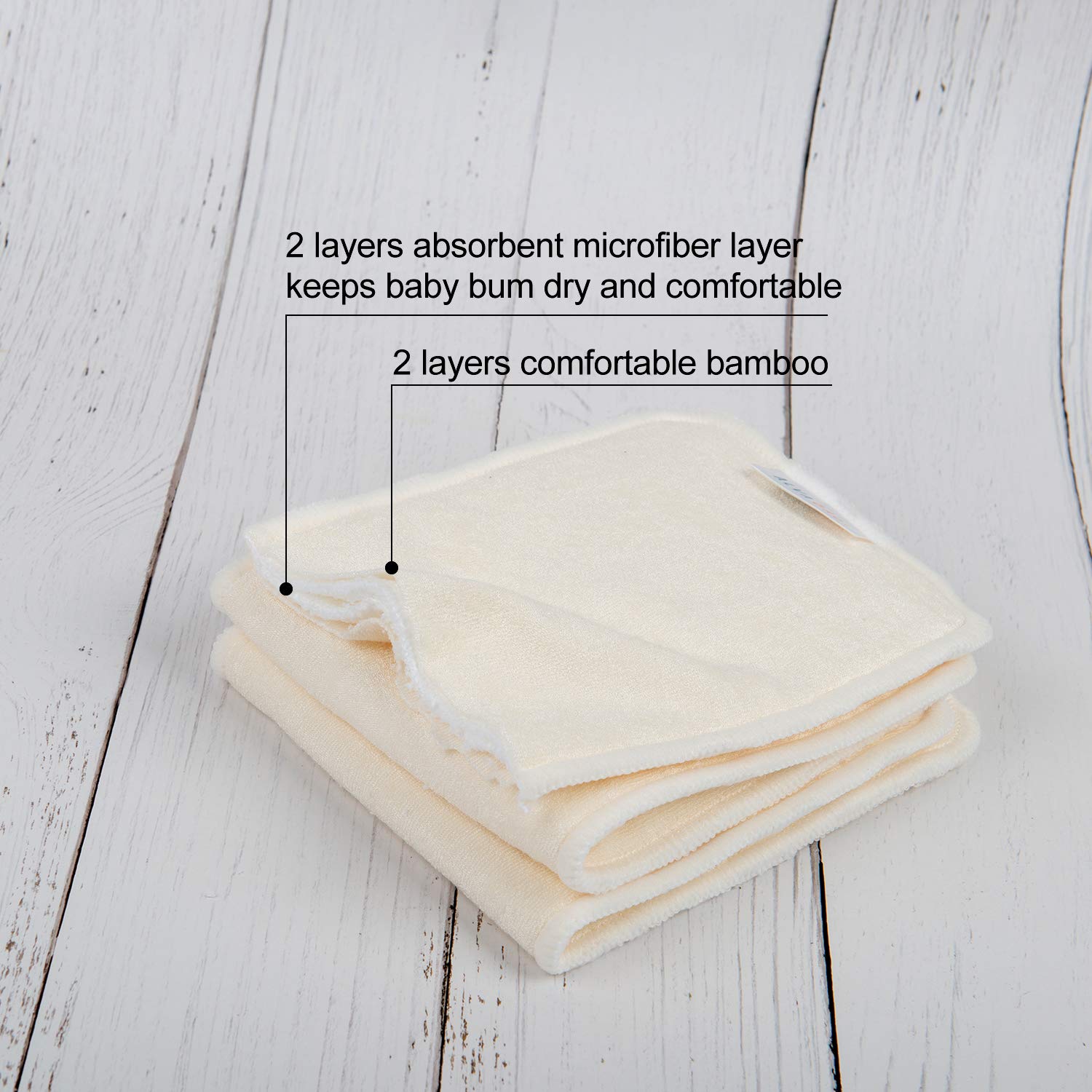 Super Absorbent and Soft: Experience ultimate comfort and dryness for your baby with our super absorbent and soft inserts. Inserts are made of 2 layers fiber and 2 layers microfiber,our high-quality material and breathable design ensure gentle contact with your baby's delicate skin. The inner suede cloth wicks moisture away from their bottom, keeping them rash-free. Say goodbye to discomfort and hello to a happy, content baby.