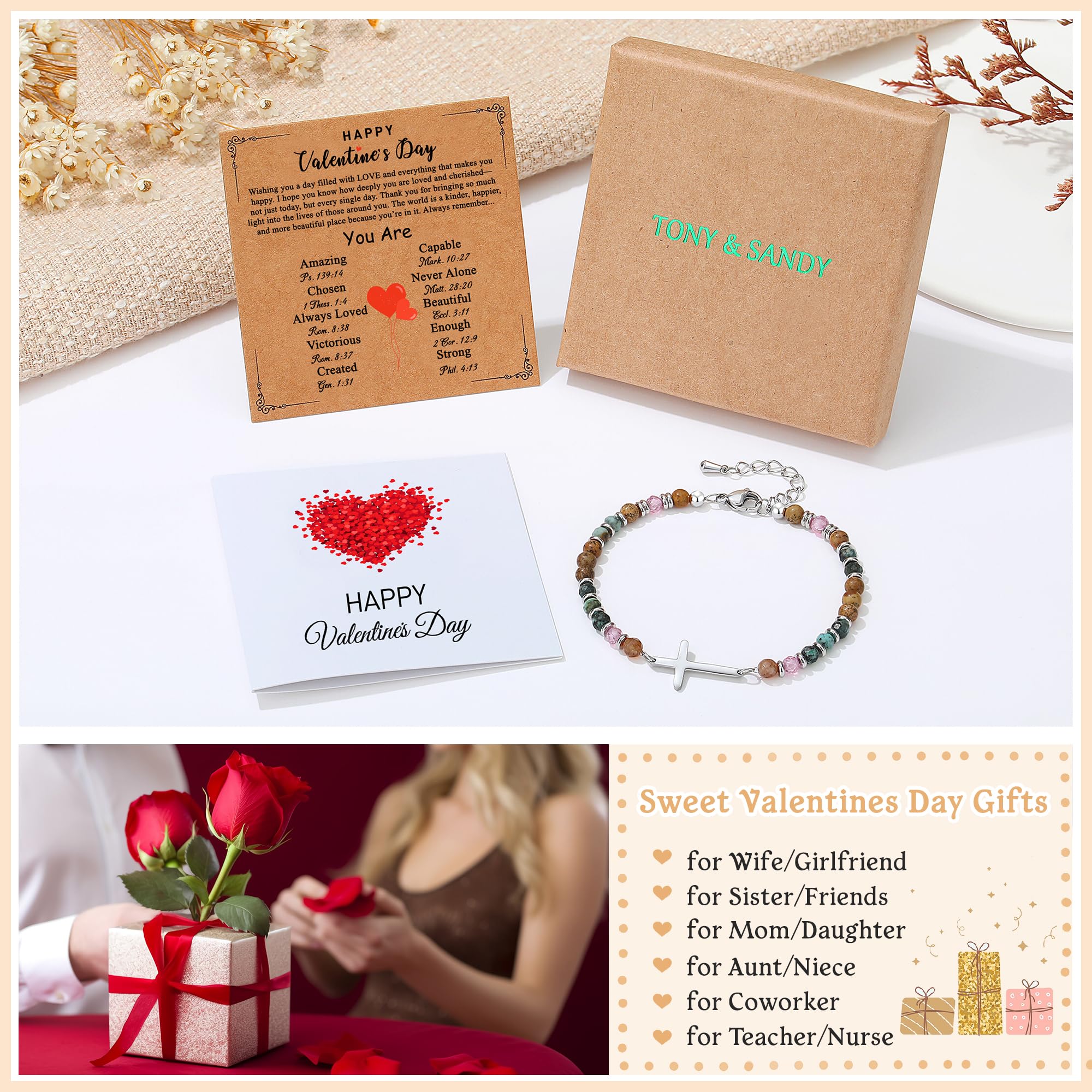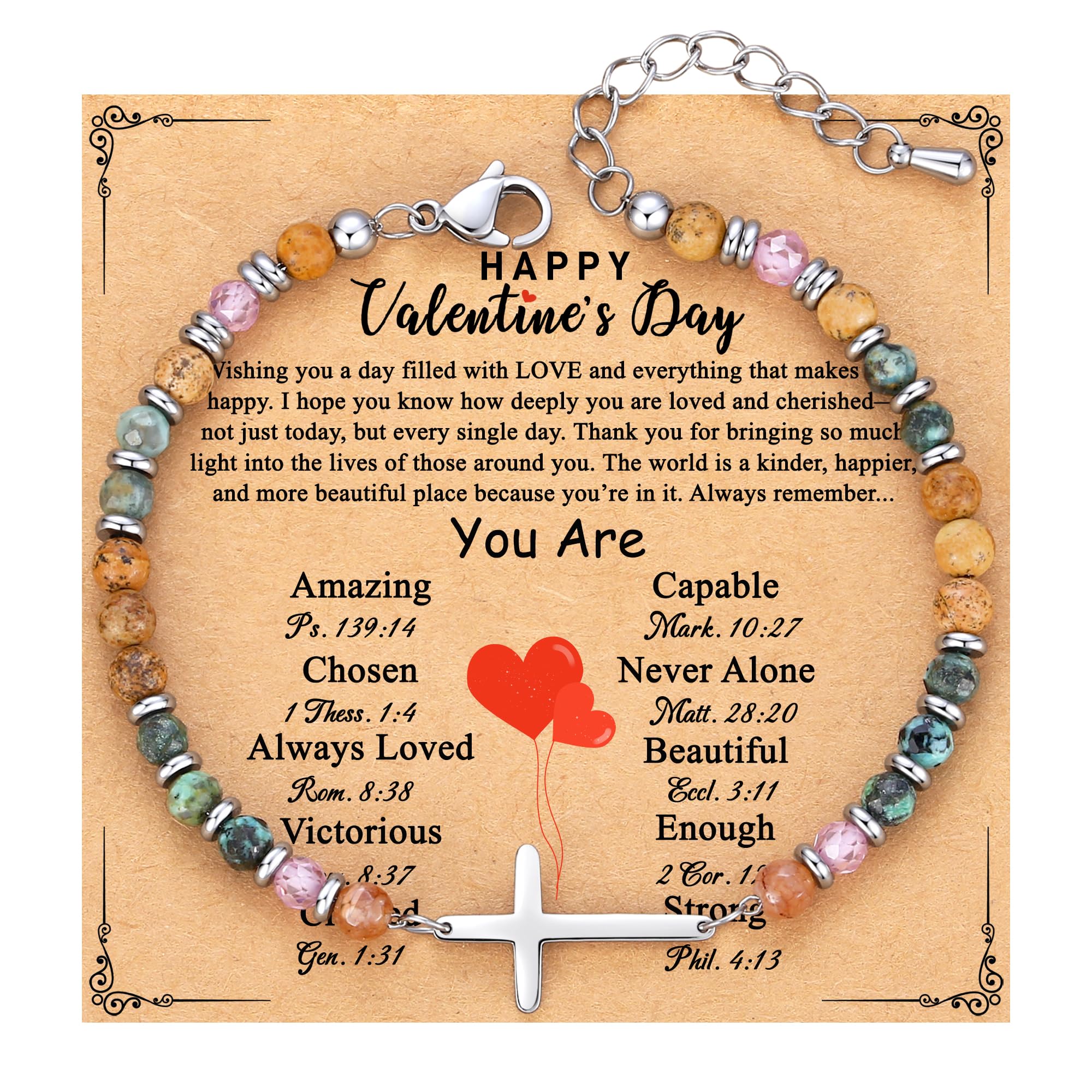 【 A Heartfelt Symbol of Love & Faith 】This beautifully designed bracelet is the perfect way to honor the special women in your life on Valentine's Day. Adorned with earthy-stones symbolizing peace and strength, it conveys prayers and deep appreciation, making it an ideal gift for women, teen girls, and young ladies. Let her feel truly remembered and cherished.