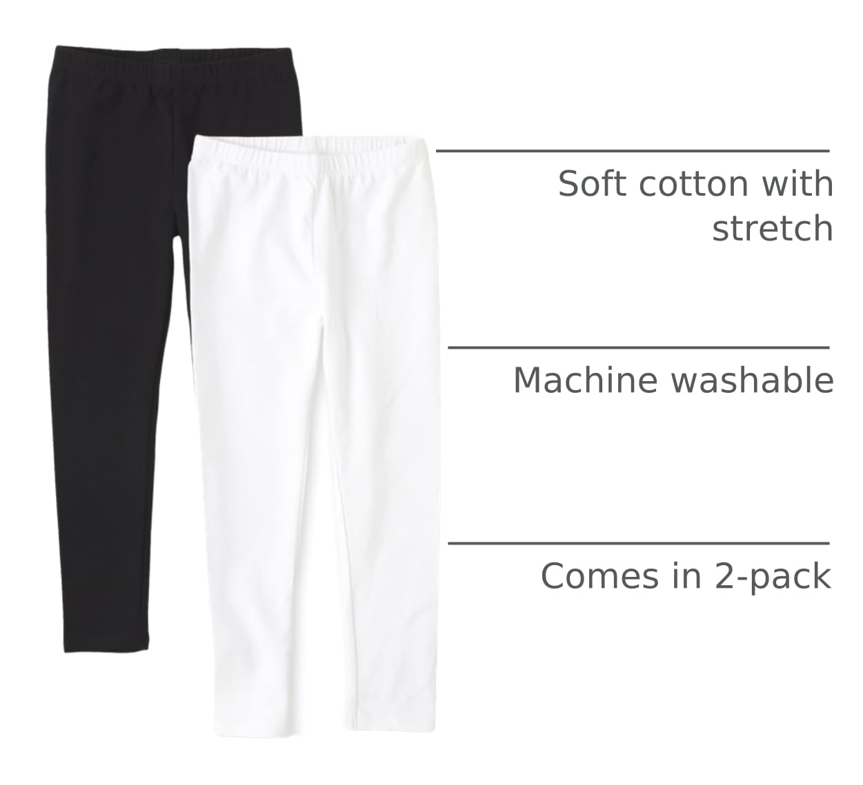 These leggings hit at the ankle and have a covered elasticized waistband for no-fuss wear