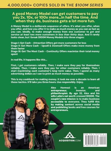 *Guinness World Record: Fastest Selling Non-Fiction Book in History* ** OVER 5,000,000 COPIES SOLD IN THE $100M SERIES!! ** This book will show you the art of getting more customers to spend more money faster. If you have a business, this book will help you make more from it. If you don’t have a business, this will help you start one. If you have parents, this book will help you retire them. If you have rivals, this book will help you beat them. If you have monetary goals, this book will help you achieve them. I’m not a happiness guru, a fitness guru, an investing guru, or anything else. But, I can show you how to accelerate cash flow in a business - in other words - get more customers to spend more money in less time (over & over again). I know because it’s all I’ve done in my adult career. I crossed $100M net worth by age 31. Today: I buy and scale companies at my family office Acquisition.com. My side hustle: I make content showing how we do it. My joke life goal is to be the most jacked billionaire. My real-life goal is to die with nothing left to give. A little more about the book if you want that… A Money Model is a deliberate sequence of offers. It’s what you offer, when you offer, and how you offer it to make as much money as you can as fast as you can. Ideally, to make enough money from one customer to get and service at least two more customers in less than thirty days. And it rarely looks clean, but I break $100M Money Models into three stages: Stage I: Get Cash - Attraction Offers get more customers for less Stage II: Get More Cash - Upsell & Downsell Offers make more money from them faster Stage III: Get The Most Cash - Continuity Offers maximize their total money spent In real life, it happens like this... First, I get customers reliably. Then, I make sure they pay for themselves reliably. Then, I make sure they pay for other customers reliably. Then, I start maximizing each customer’s long-term value. Then, I spend as many advertising dollars as I can to print as much money as possible. This is my cookbook for making money. It took me over a decade to learn all these tactics. It’ll take you three hours. Use responsibly. Enjoy. If you want to learn more and make more money for your business...then ADD TO CART, use its contents, and see for yourself. Disclaimer: This book is for educational purposes only and does not guarantee results. Business outcomes vary based on many factors outside the author’s control. Nothing herein should be taken as legal, financial, or professional advice. The author and publisher disclaim liability for any losses or decisions made from use of this material