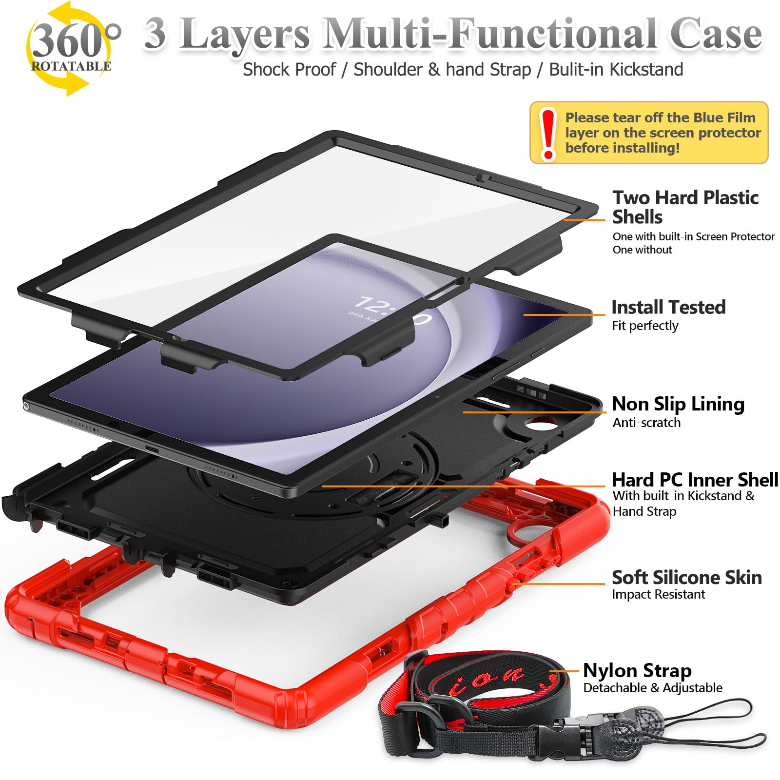 【Portable Shoulder Strap】The strap keeps your Galaxy tab a9 plus away from dropping broken, port plugs of the case prevents dust from entering. Easily carrying device by hanging it anywhere while walking, hiking, driving, traveling or entertaining activities outside