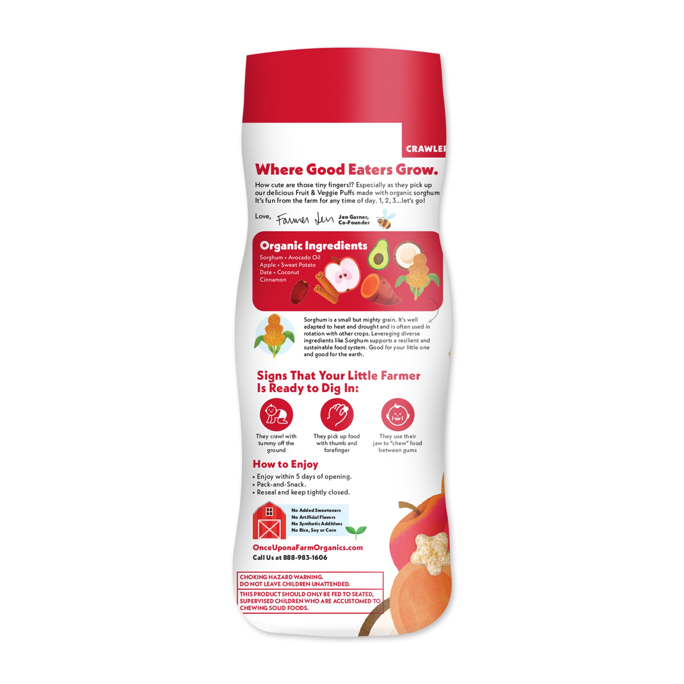 SIMPLE & CLEAN INGREDIENT LIST: Made with avocado oil, our organic sorghum-based Fruit & Veggie Puffs include delicious flavors inspired by our Baby Food Pouches. No rice, corn, or cassava here!