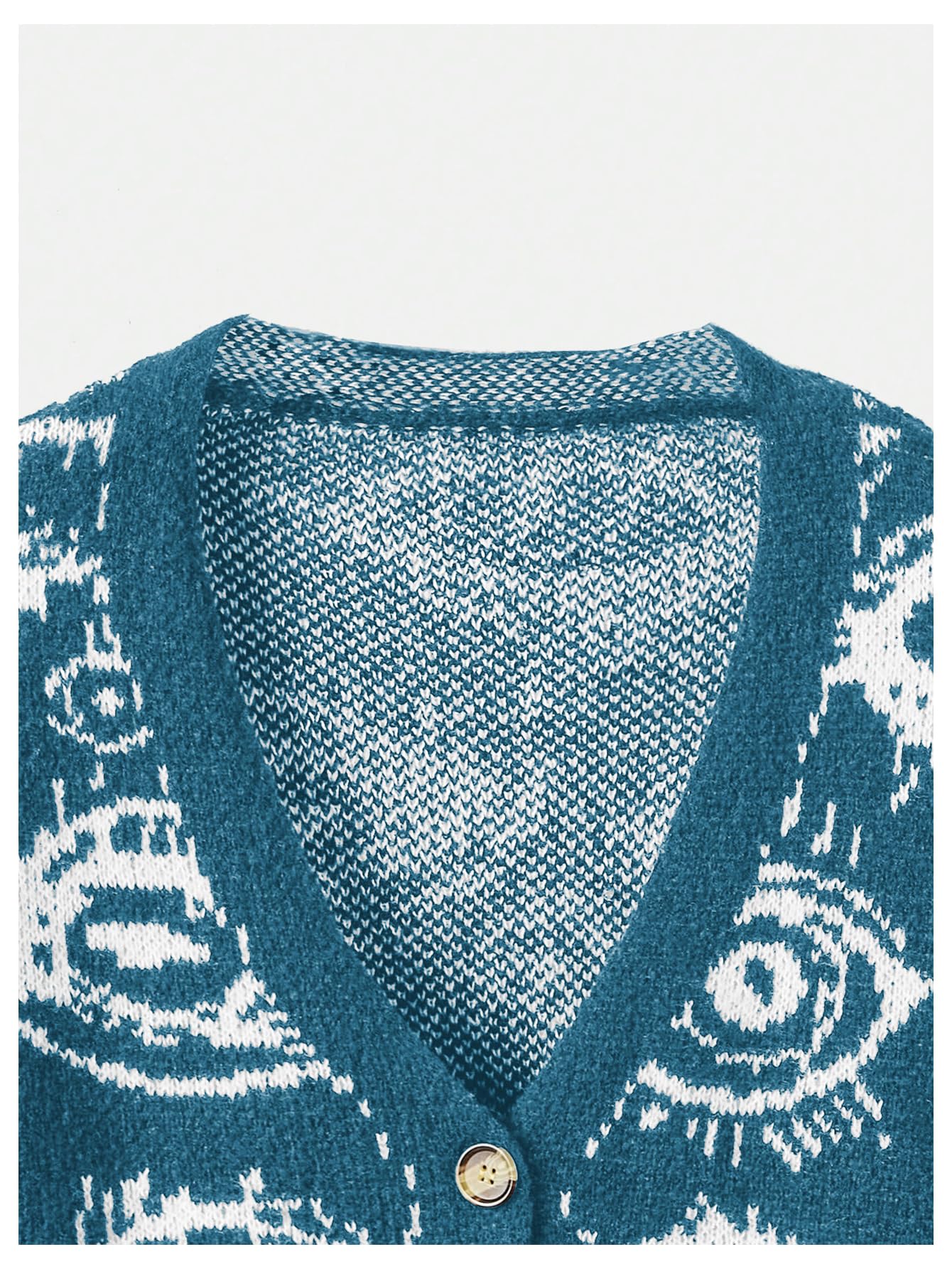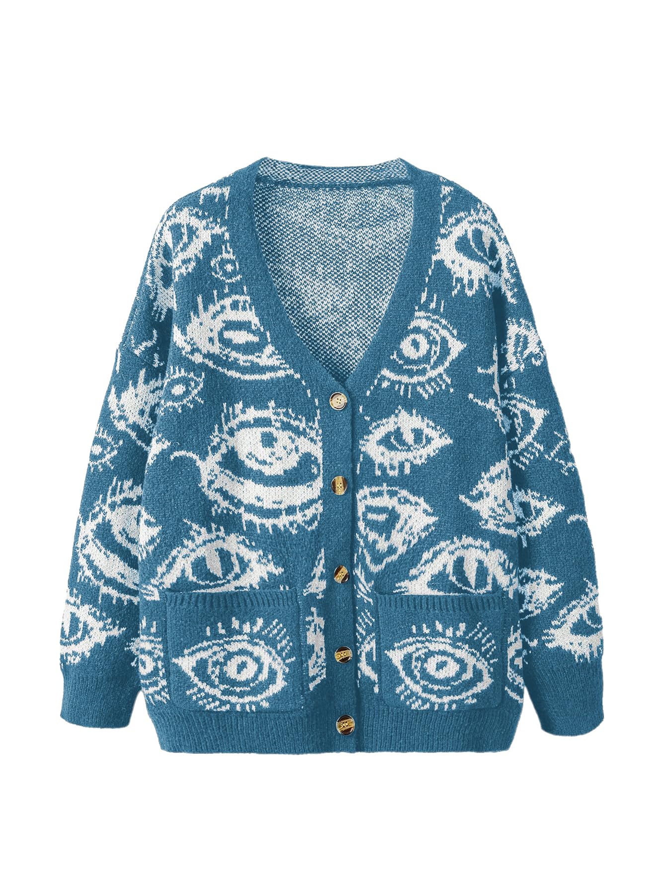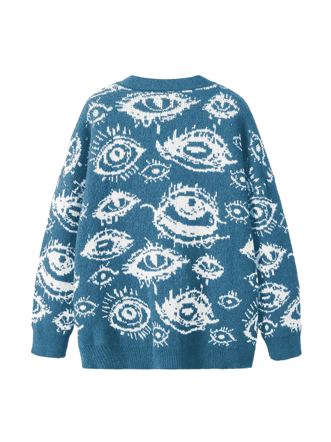 Features: button down cardigan for women, grunge punk sweater cardigan, eye print, goth sweater top, long sleeve, v neck