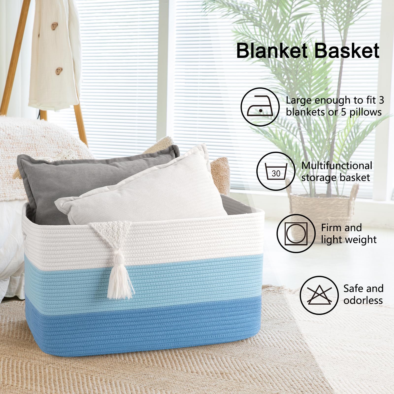 Decorative Blanket Storage for Living Room:This rectangular blanket basket is more stable and easier to restore its sahpe after you receive the package. The 22ββ x 17ββ x 12ββ large storage basket can also used to store blankets, pillows, cushions, toys, clothes and towels