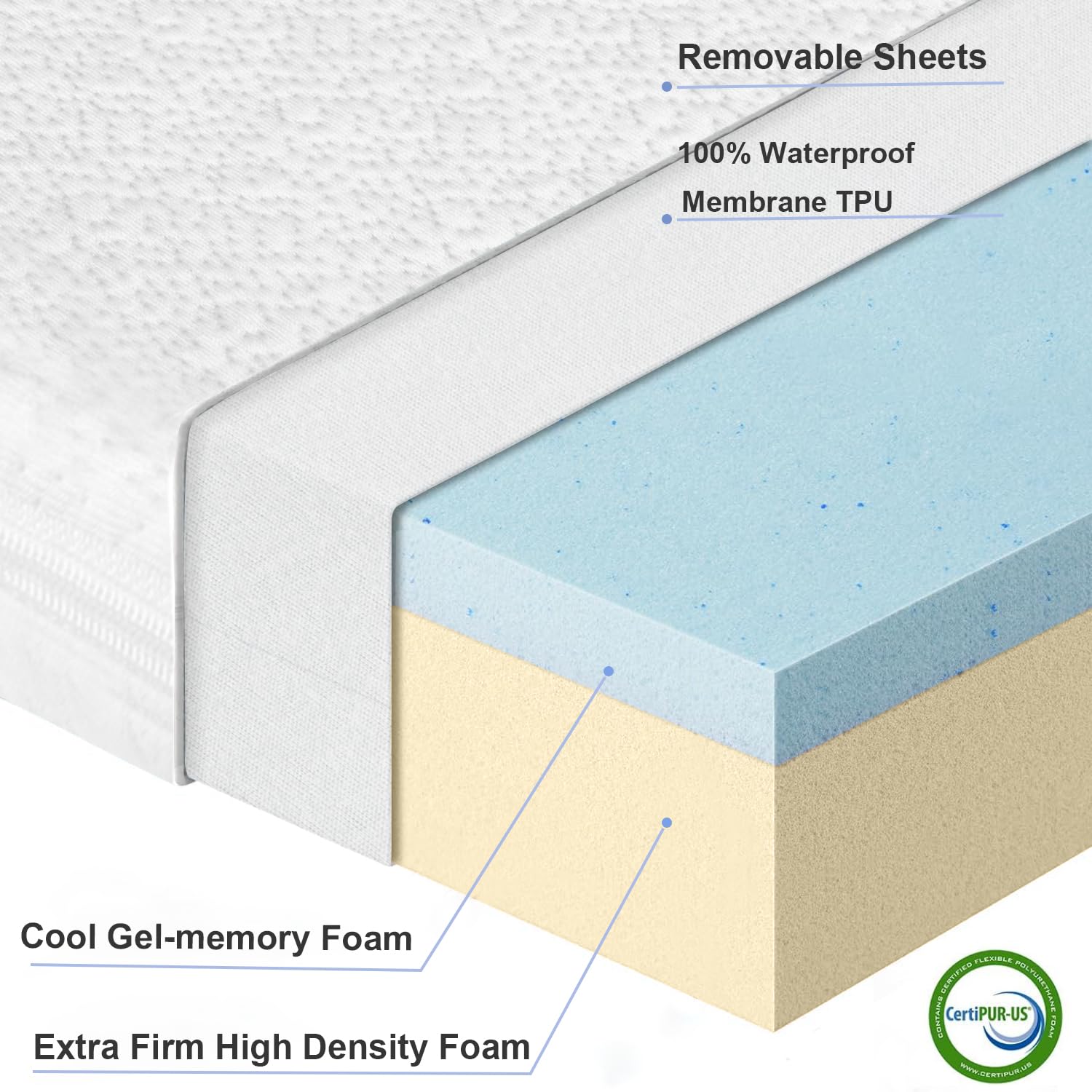 【Dual Sided Firmness】Baby bassinet mattress has dual-sided firmness to provide support and comfort for babies at different stages of growth. The softer side features cooling gel memory foam; the firmer side features high-density support foam.