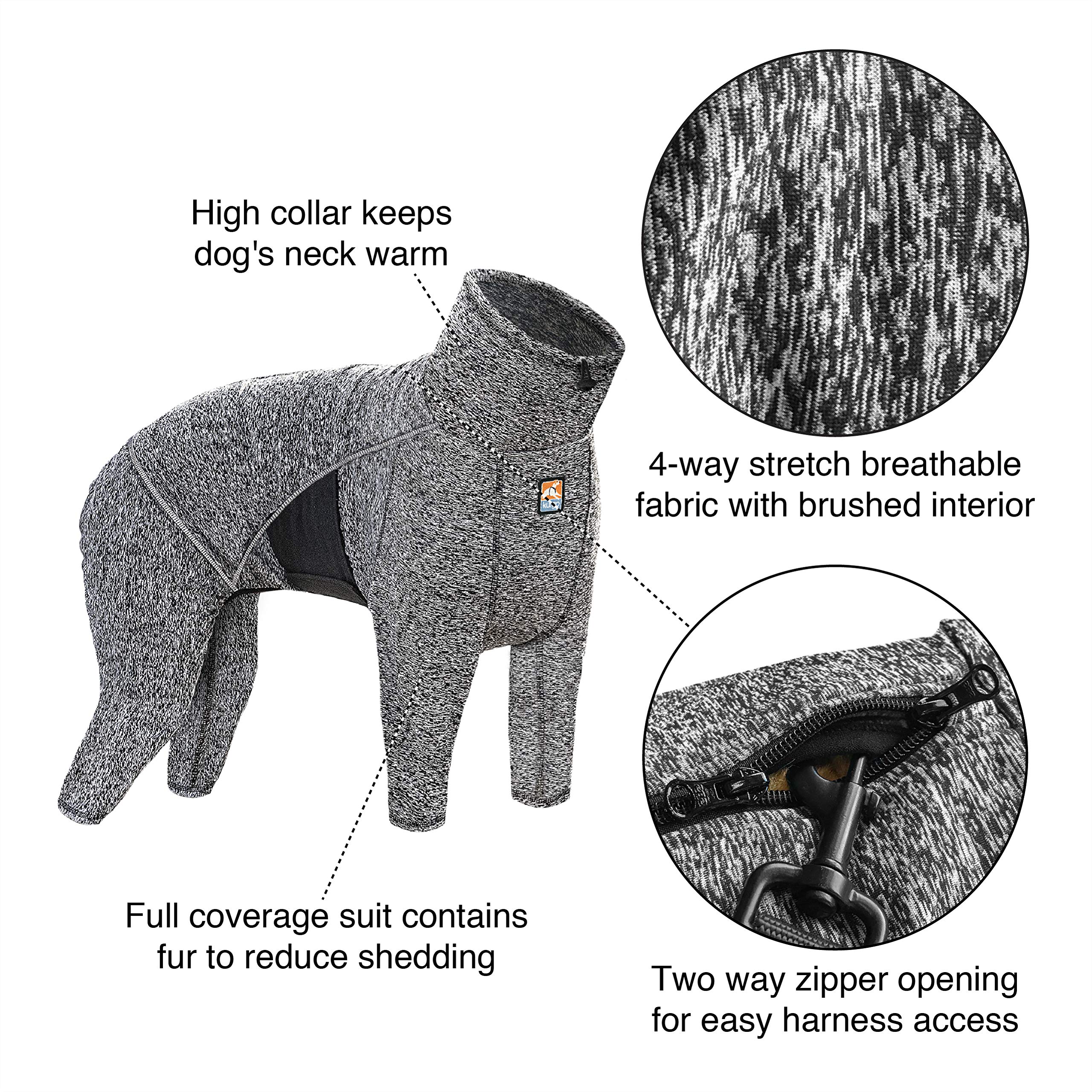 Keep your dog warm, comfortable, and stylish in cold weather with the Kurgo Stowe Base Layer—a versatile suit that’s ideal on its own or as a base under other dog jackets. Designed for active dogs and cozy companions alike, this lightweight stretch outfit offers the ultimate combination of warmth and mobility. The soft interior feels like a second skin, while the high collar shields your pup’s neck from cold drafts. Dual zippers run down the back for quick dressing and easy leash or harness access. The adjustable belly band adds a snug fit while also providing calming pressure. Reflective side seams improve visibility in low-light conditions for nighttime walks or early-morning adventures. Ideal for winter layering or lounging indoors, the Kurgo Stowe Base Layer is also a smart choice for dogs recovering from surgery or managing excess shedding. The open belly design ensures bathroom breaks are no hassle, and the full-body sleeve construction helps keep fur off your furniture, car, or guests’ clothes. Made from durable polyester and spandex materials, this suit is machine washable, so it's ready for the next outing. Whether you’re suiting up your pup for a snowy hike or just trying to keep them warm on the couch, this flexible pet bodysuit is built for both performance and comfort. At Kurgo, we believe that life’s best moments happen when you and your dog explore the world together. That’s why every product we create is designed to make those adventures easier, safer, and more enjoyable. From trail-tested harnesses to travel-friendly accessories, our gear is made with high-quality materials and real-life usability in mind. Backed by a lifetime warranty, Kurgo products combine rugged durability with smart functionality—because your dog deserves gear that works as hard as they play. Let’s gear up and go together.