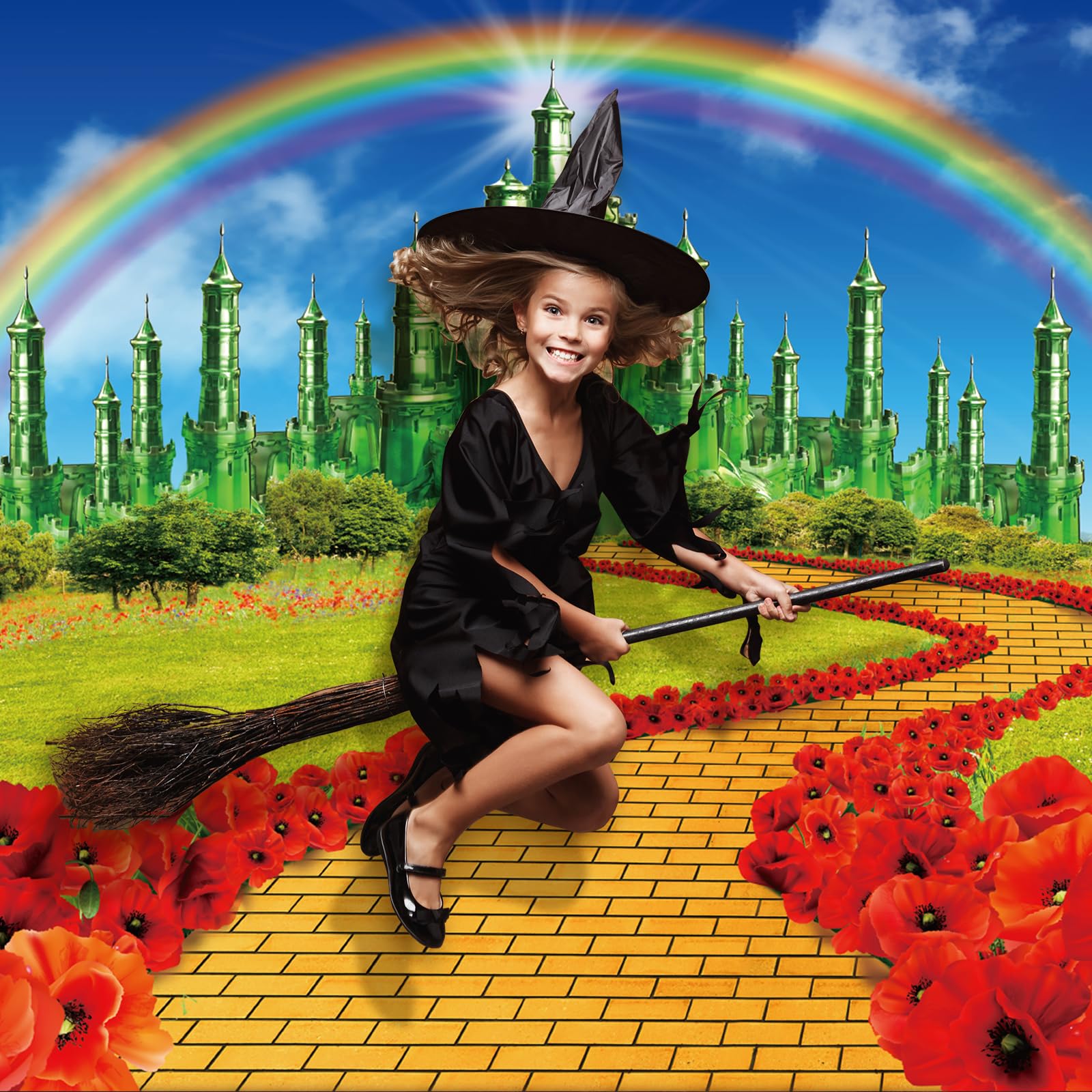 Design for wizard party:our emerald castle scene sets are design with emerald castles,floral and yellow brick road, rainbow,which looks like leading you to the castle from far to near,using it as your photography background makes people like being there