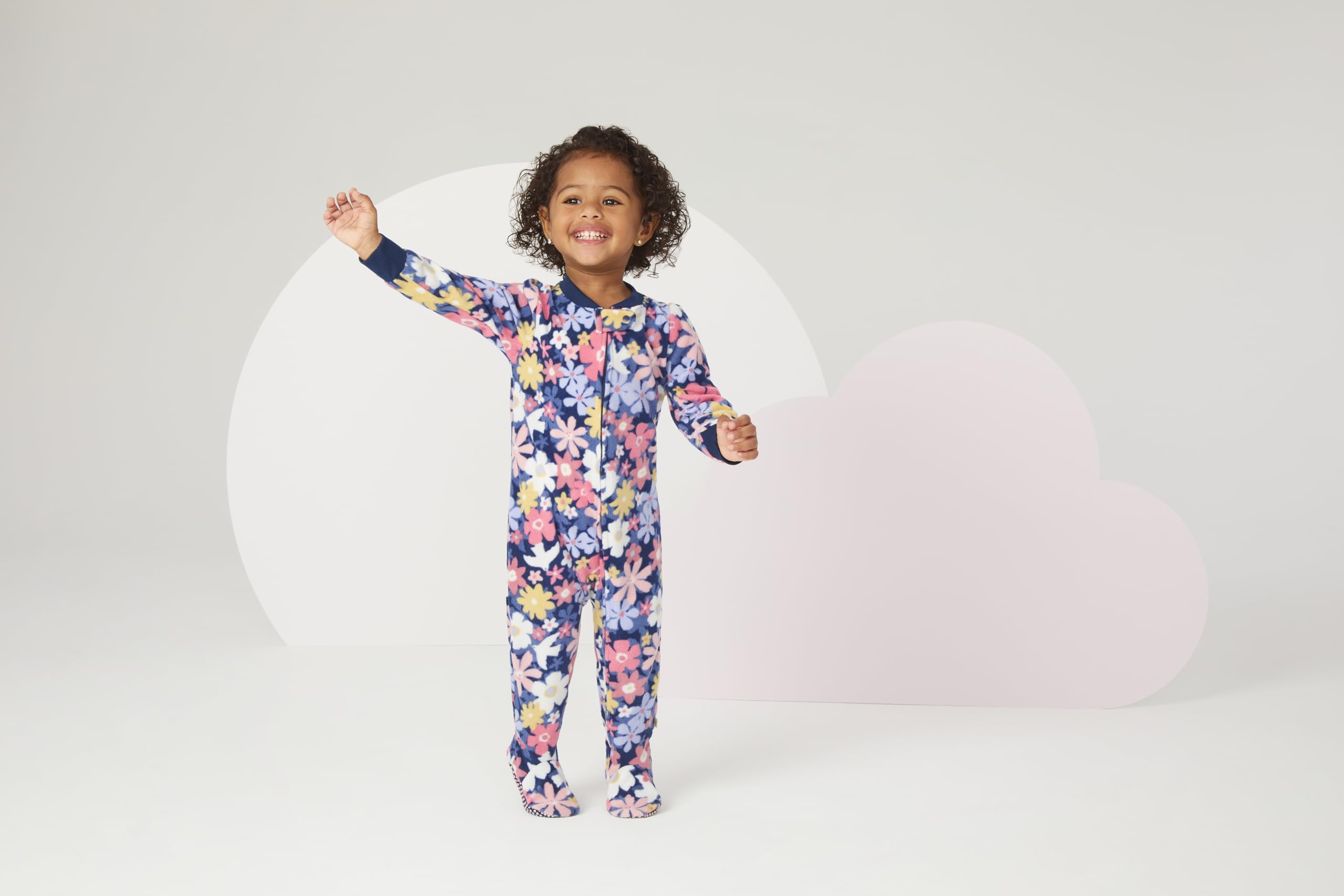 Description Designed by the baby experts at Huggies, this 3-pack of sleep coveralls are made of breathable, soft-knit fabrics so you can sleep in style, baby! The two-way zipper makes late-night diaper changes a breeze, and a super comfy snap guard gives your child a cozy, secure fit. Elasticized, footed bottoms keep tiny toes warm all night, and silicone grips give your toddler an extra boost when they are on the move. With three adorable prints to choose from, this 3-pack wraps littles in comfort and cuteness!