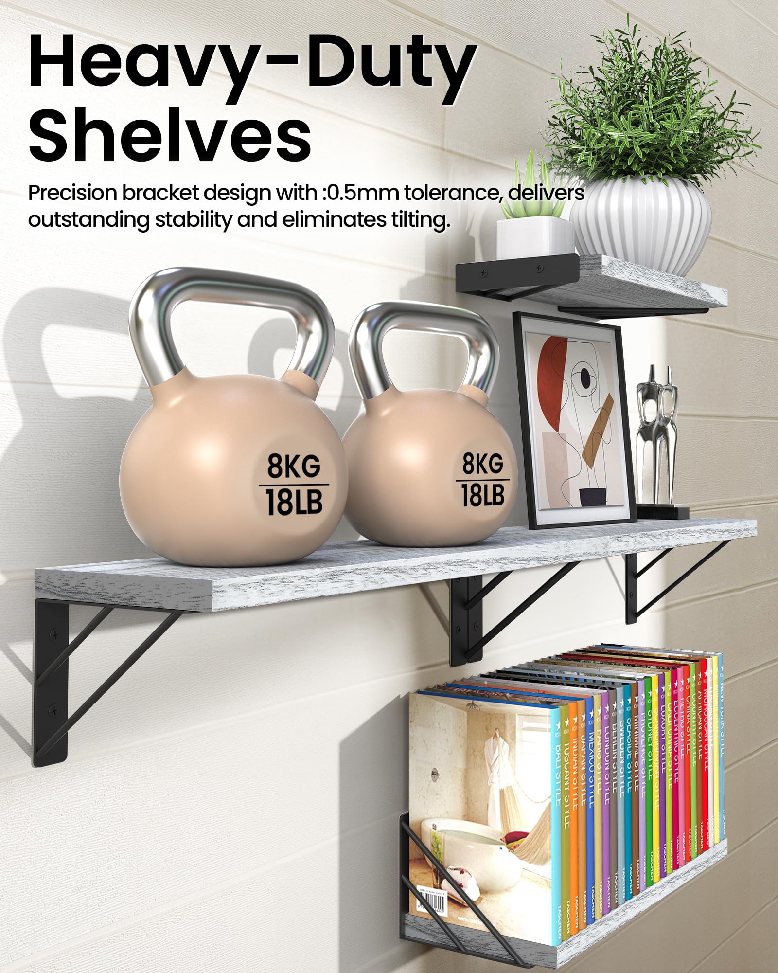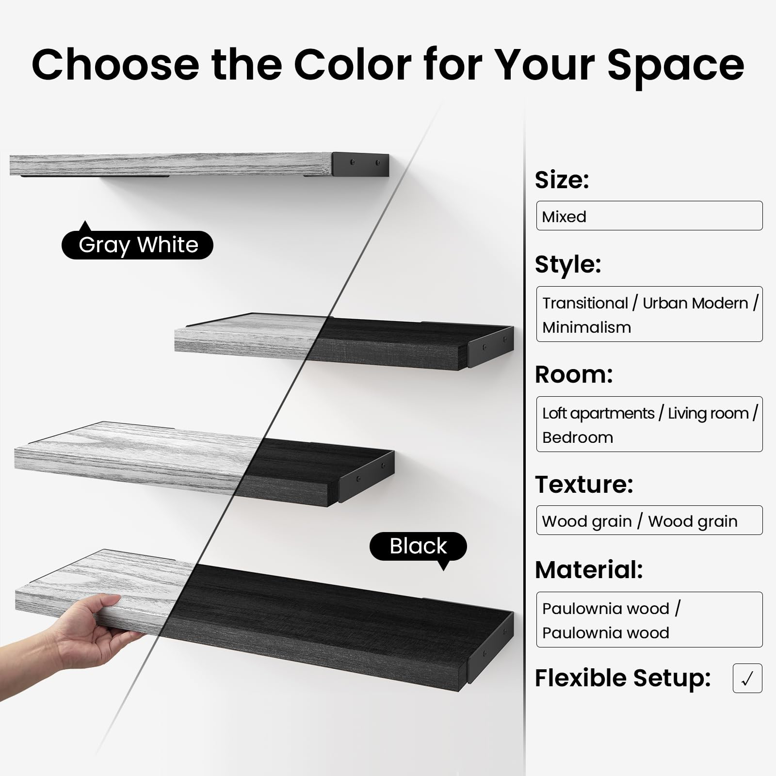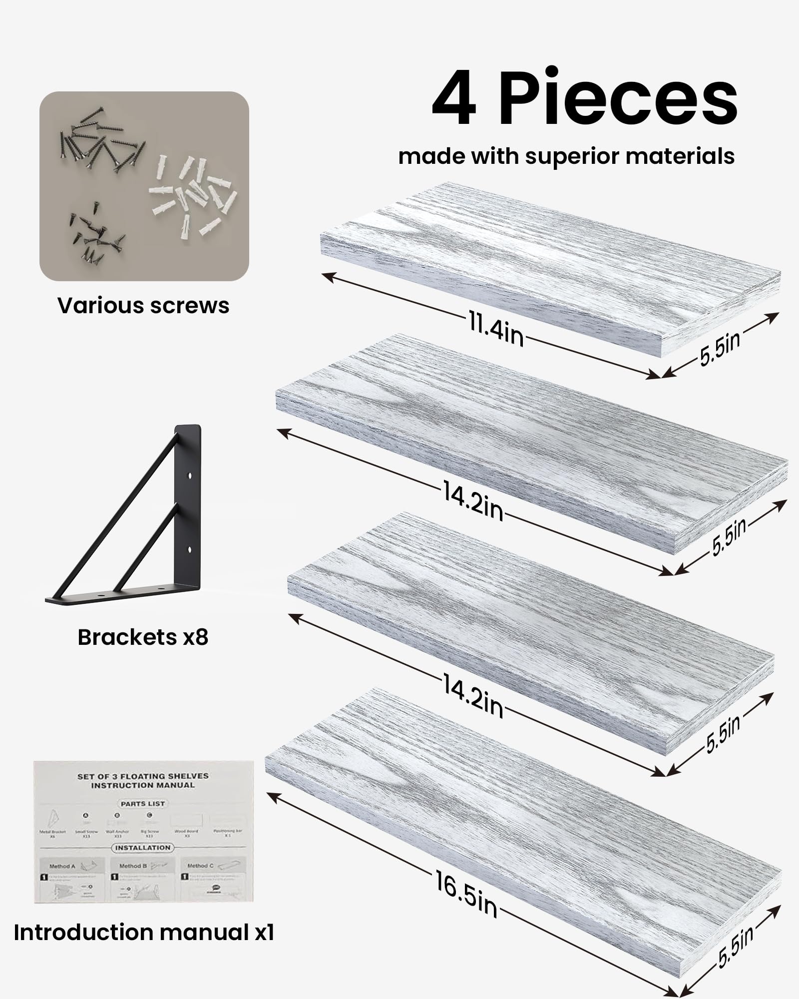 Organize your space with our wall mounted shelves. These Gray White shelves are perfect for bedrooms, bathrooms, or living rooms. With their sleek design and easy installation, they are ideal for any room, providing both practicality and a stylish touch