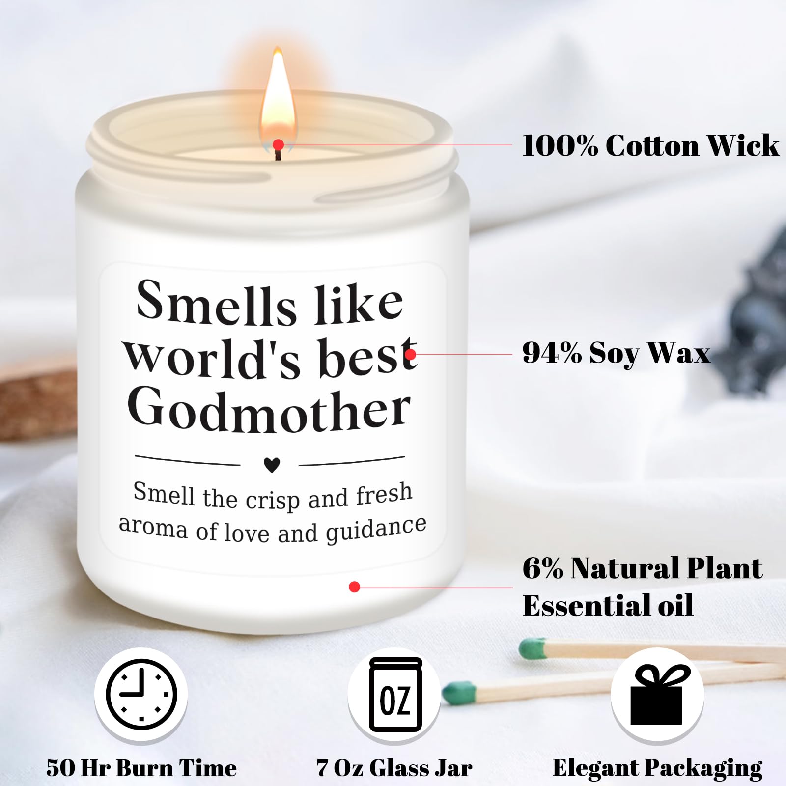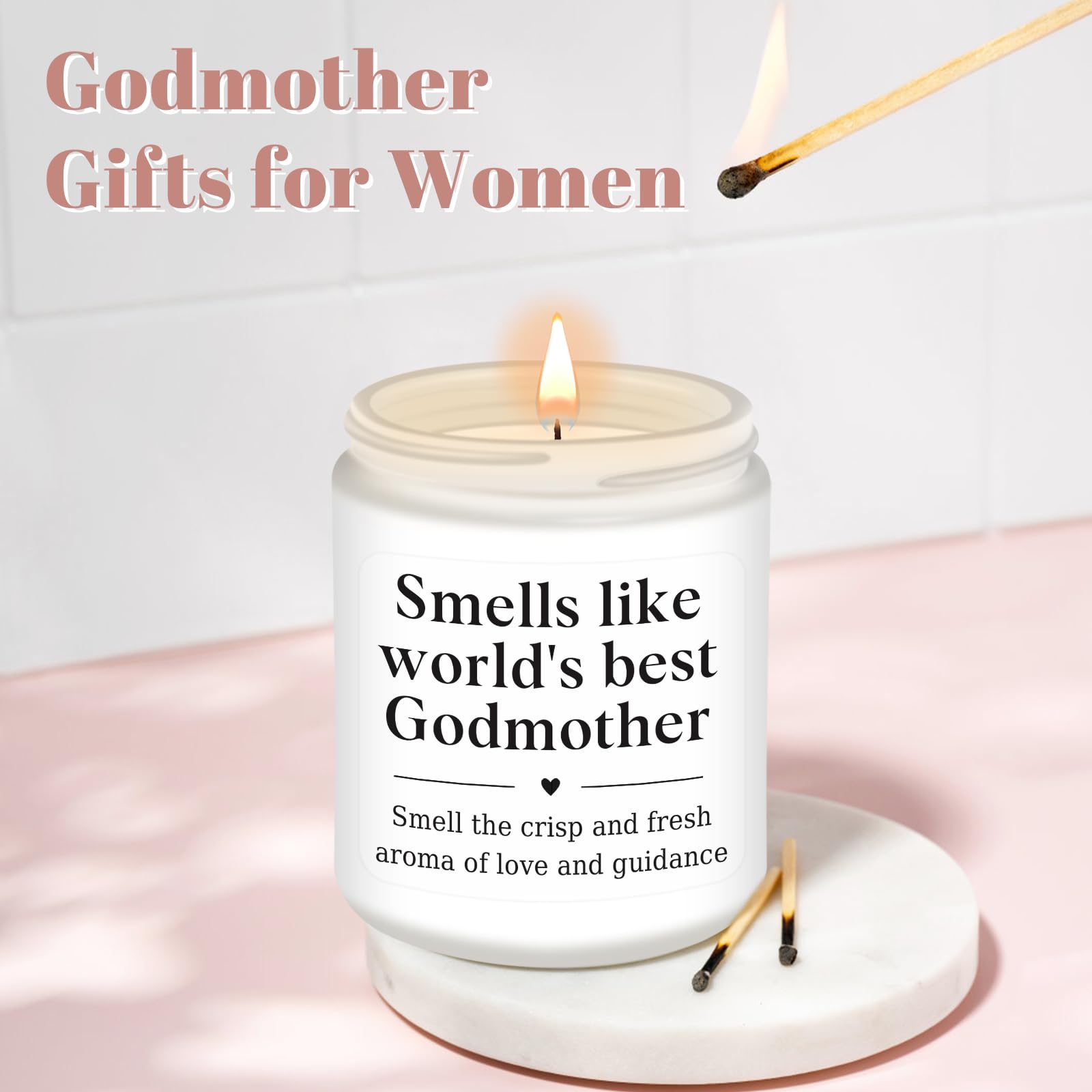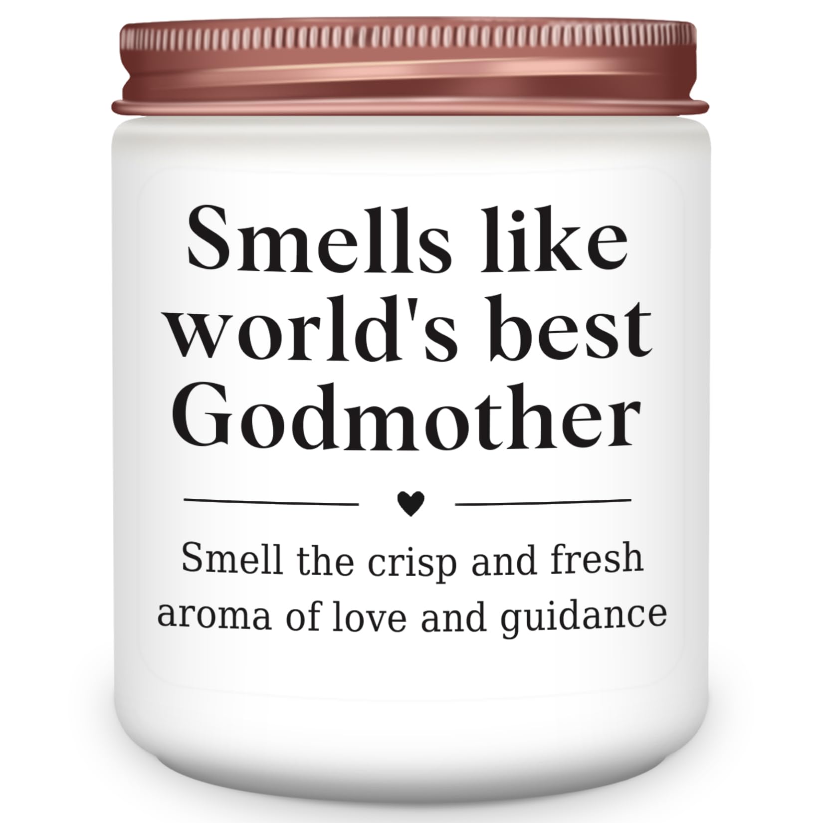 Godmother Gifts for Women: Candle with the funny printed on the front "Smells like world's best Godmother". Send this fun mother god candle gift to your godmother to convey your gratitude and love