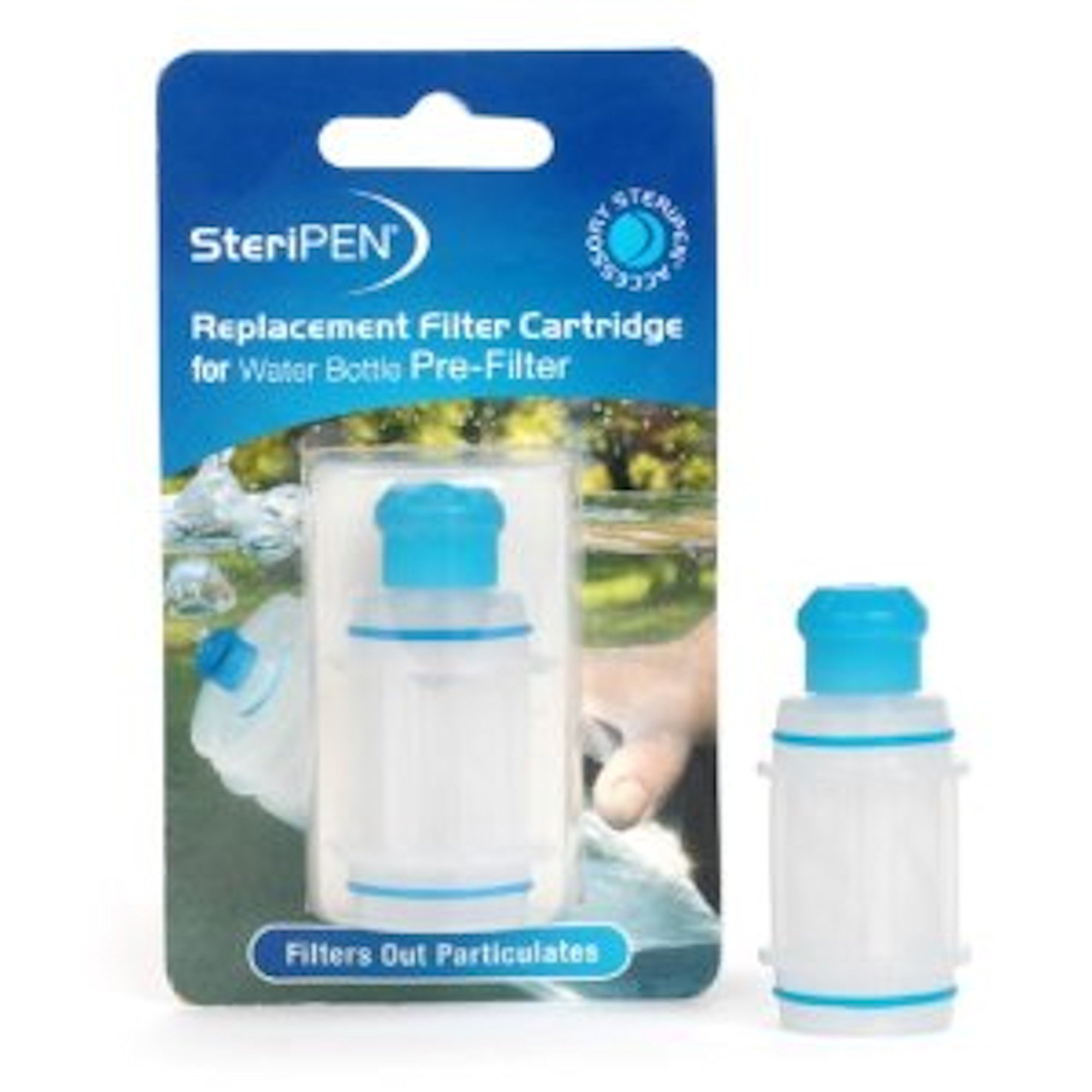 Amazon.com The SteriPen Pre-Filter is designed to filter out particulates and sediment from your water before you apply the UV purifier. Designed for use with wide-mouth water bottles, the Pre-Filter has a 4x4-micron filter screen that sifts sediment and small particulate matter out of the water. The screen is held within a cartridge with an air vent at the top and allows for either pour through or immersion methods to filter the water. Once the water is cleared, the water purification process employed by the SteriPen UV water purifier will be more effective. About SteriPen Ultraviolet (UV) Water Treatment: The ultraviolet (UV) water treatment method has now been used for over one hundred years, and is currently used to purify drinking water by some of the largest cities in North America, Europe, and Asia, including Seattle, Washington and Tempe, Arizona. Ultra violet light is also used by bottled water manufacturers to purify their source water. The EPA officially recognized the use of UV water treatment as a proven, viable technology in 1996. In a simple but effective process, UV purification destroys over 99.9 percent of harmful microorganisms in drinking water. The UV energy emitted by the light is absorbed by the cells within potentially harmful microbes. The UV energy breaks down the cells' ability to reproduce DNA--making it impossible for them to reproduce and make you sick. Thousands of outdoor enthusiasts all over the world have trusted SteriPen for many years. Introduced to hikers and campers at REI in 1999, Time Magazine named the SteriPen one of the "Best Inventions of the Year" in 2001. SteriPen's speed, effectiveness, and portability have impressed end users and media alike. Backpacker Magazine, Newsweek, and the Today Show have featured SteriPen as a powerful, user-friendly alternative to pumps, chemicals, and filters. SteriPen products have been tested by the Water Quality Association (WQA) against the US EPA Microbiological Water Purifier Standard. SteriPen has received the WQA's Gold Seal, certifying that SteriPen purifies water safely and effectively. Product Description STERIPEN Pre-Filter The patented Steripen® Pre-Filter with 40 micron filtration screen removes debris from water so UV light can effectively destroy the microorganisms in it. It forms a water tight seal with Steripen® Classic 3 and Steripen® Ultra™.