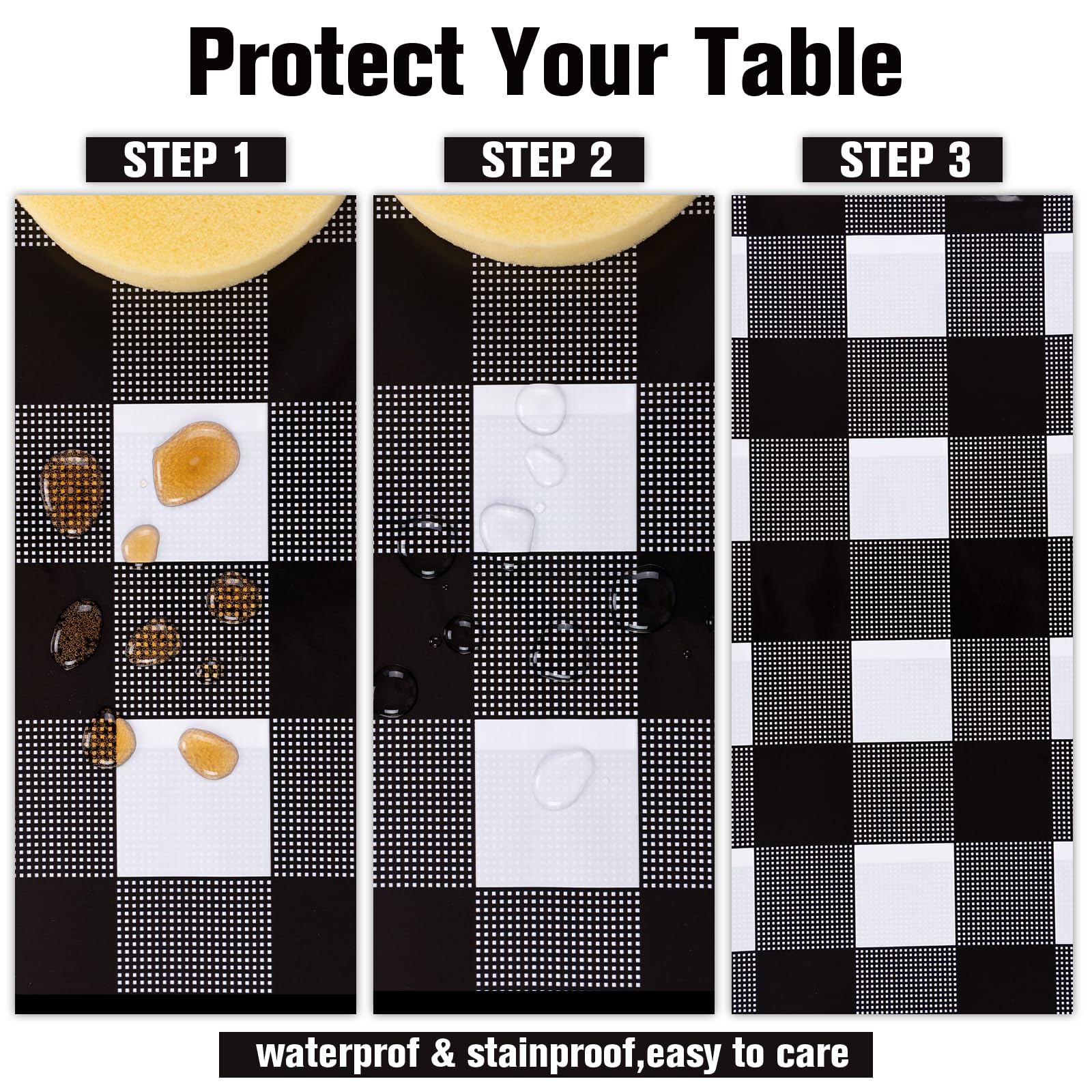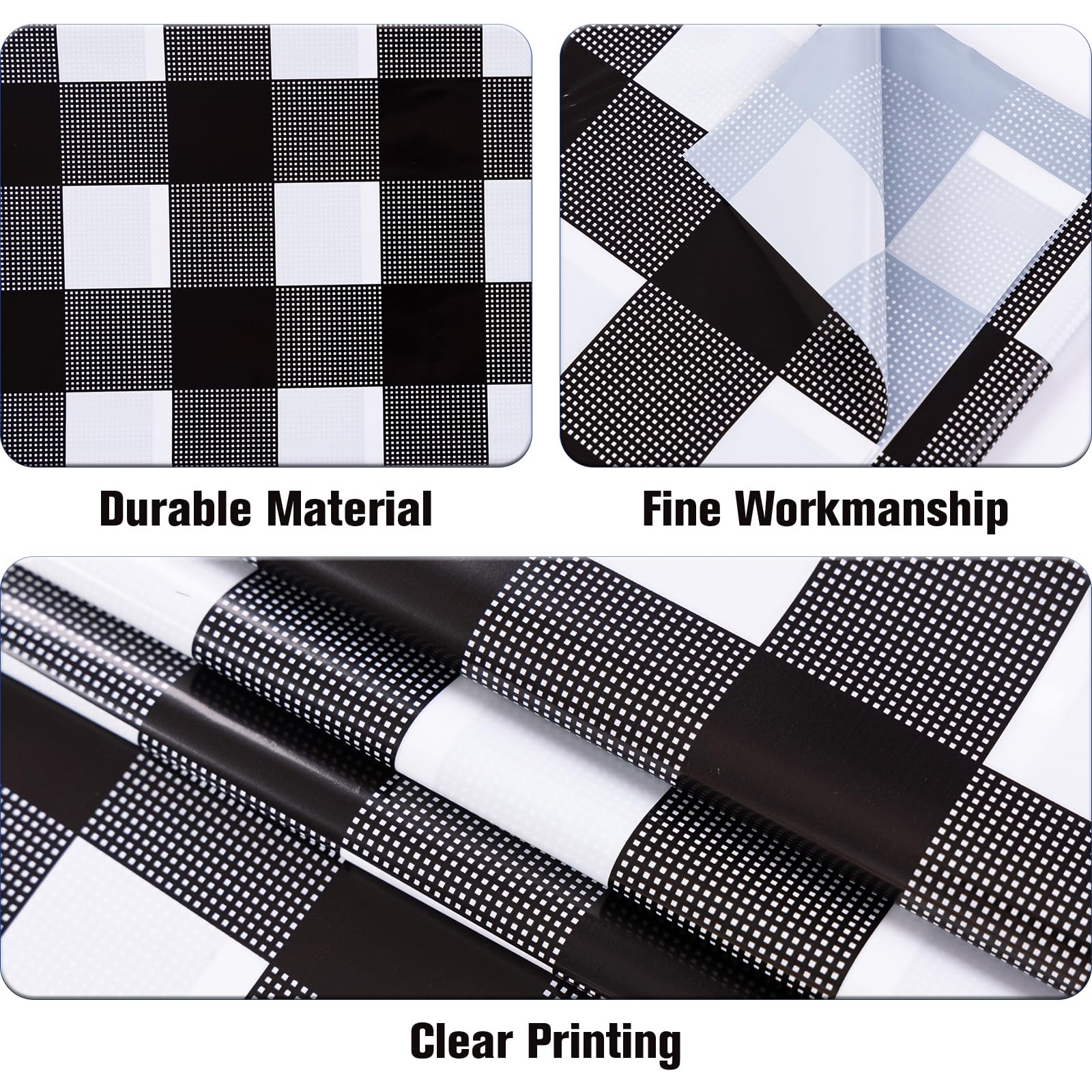 Reliable material: These plastic black checkered tablecloth are made of high quality PE plastic material with a seamless transition between adjacent checkered patterns, waterproof and reliable, durablenot, easy to tear and fade, also stain-resistant and spill-proof