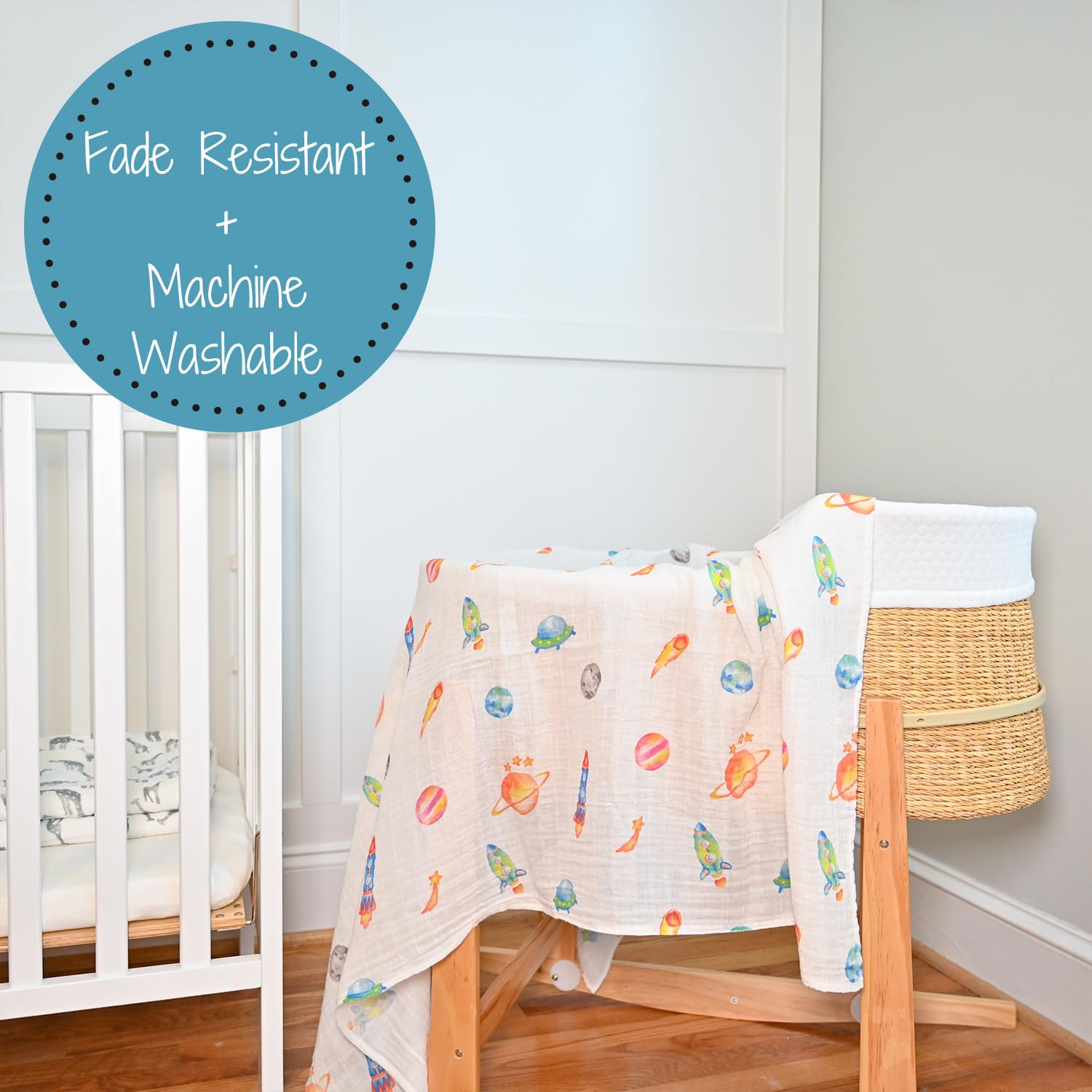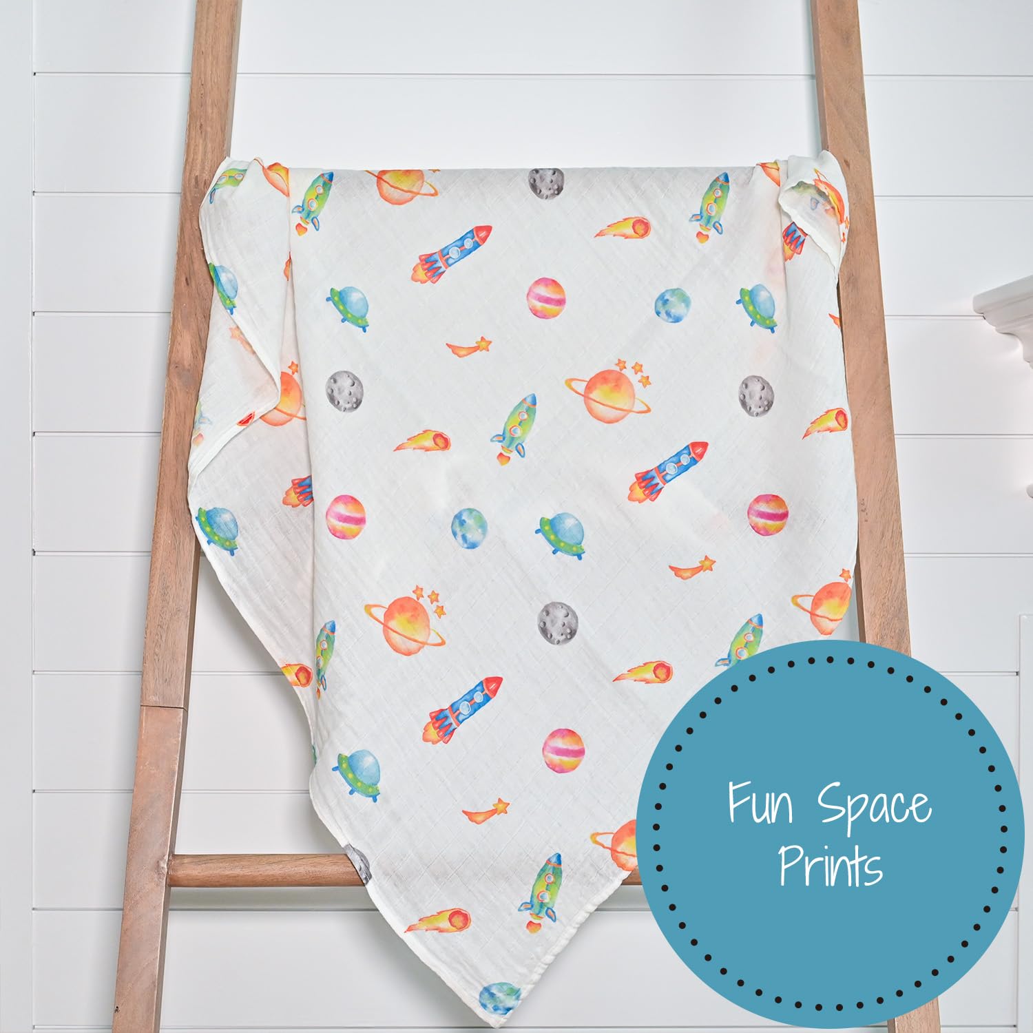 SPACE ADVENTURE THEME - Embark on a space adventure with our muslin swaddle blanket in the space theme. It provides a cozy yet breathable environment for your baby. Moms and dads will love receiving these as a baby shower gift or welcome present.