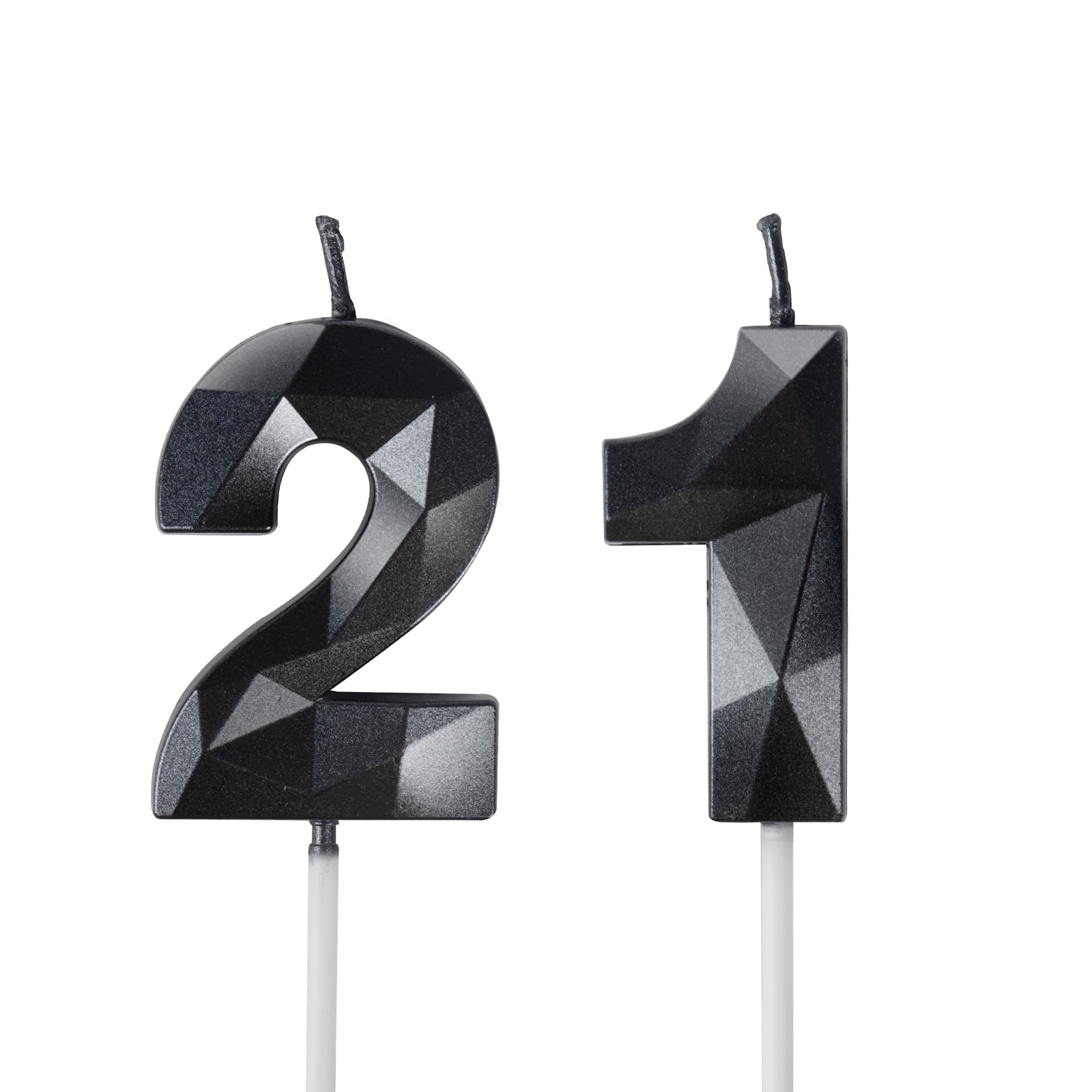 Number 21 Candles,21st Birthday Candles,Black Happy Birthday Candle for Cake,3D Design Cake Topper Decorations for Boy Men Pet Birthday Party Wedding Anniversary Celebration Supplies Features: 3D Delicate appearance: The happy birthday cake candles are meaningful for you to celebrate your birthday and nice cake topper decoration for embellishing your cake and cupcake,creating romantic atmosphere and adding a touch of elegant. Adapt to the venue: Ideal cake decoration for many occasions, such as birthdays, pet birthdays, baby showers, anniversaries, retirement parties, family reunions, weddings, Hawaiian parties, even Christmas, must-have items for party cake, bring you memorable and meaningful party. Specifications: Quantity: 2 piece Material: wax, plastic Candle length: approx. 5 cm/ 1.97 inch Total length: approx. 11.5 cm/ 4.5 inch Color: as pictures shown Package includes: 1 x Black Number 1 and 2 Numeral Cake Candles Warm notices: Please allow little error on the size due to manual. Do not leave the lighted candles unattended. Please place candles out of reach of children. And please do not light candles on or near flammable materials. Please keep the candle away from the fire when not in use, when burning, adult's supervision is needed.