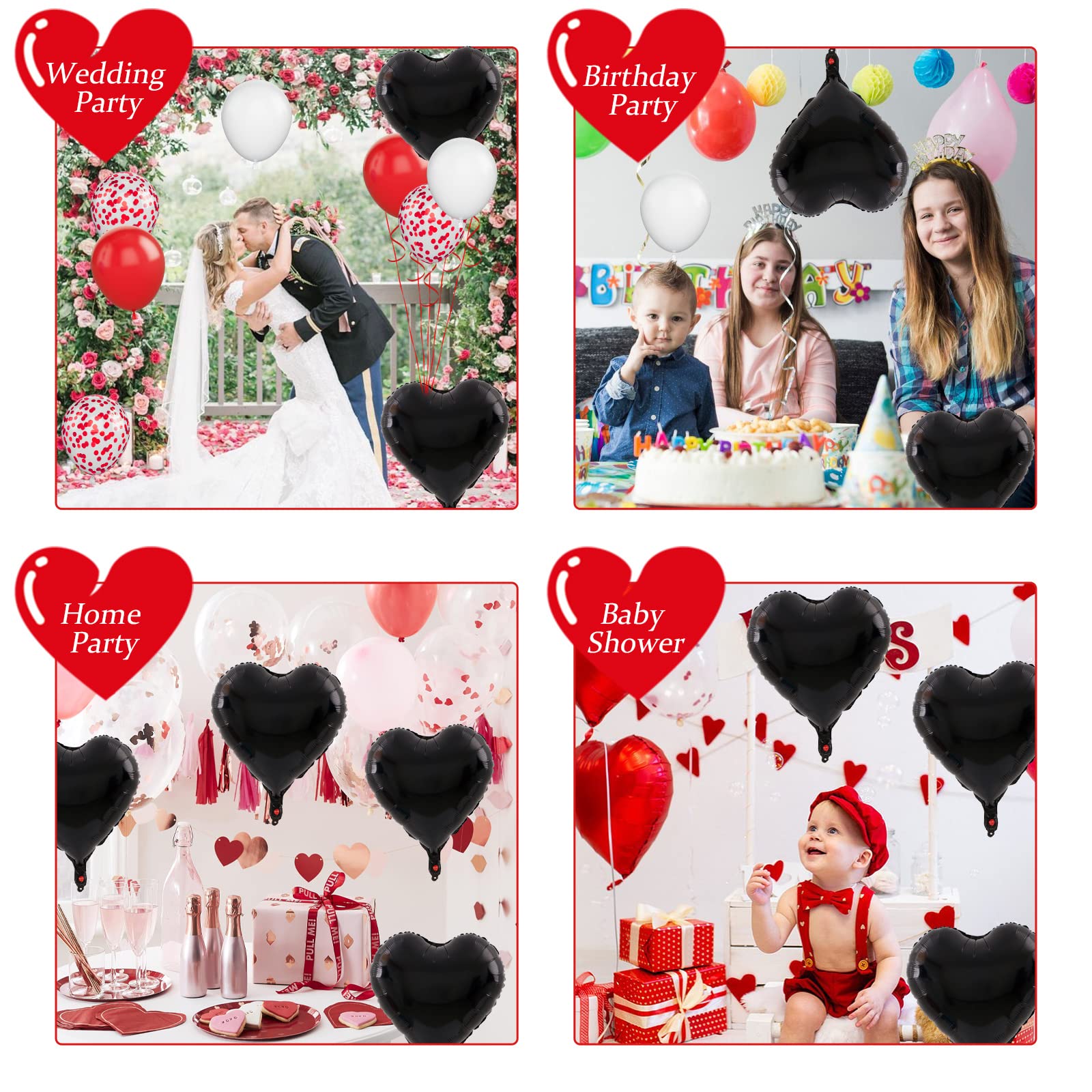 💖 Versatile Decoration: Our black heart balloons are perfect for a wide range of celebrations, including boy's and girl's birthday parties, baby showers, Valentine's Day decorations, wedding parties, bridal showers, princess parties, anniversaries, and more. They are perfect for balloon bouquets, home and table decor, wedding aisle decoration, photo backgrounds, party supplies, and other events.