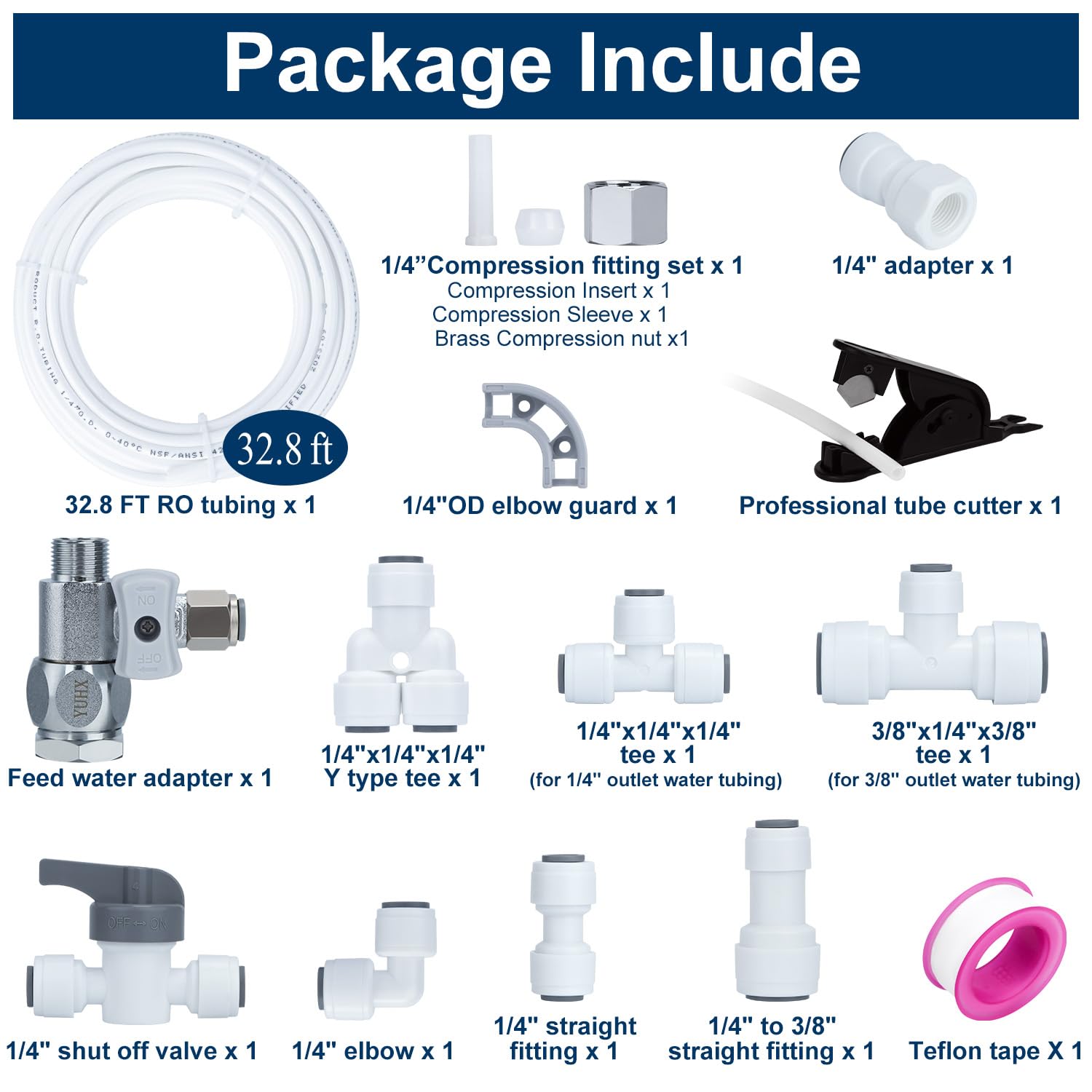 【Superior Quality】Specially designed for potable drinking water & refrigerator installations, the package includes enough accessories for all installation needs, NSF certified 1/4 RO tubing is BPA free, Odorless and tasteless,Sturdy and easy to install.