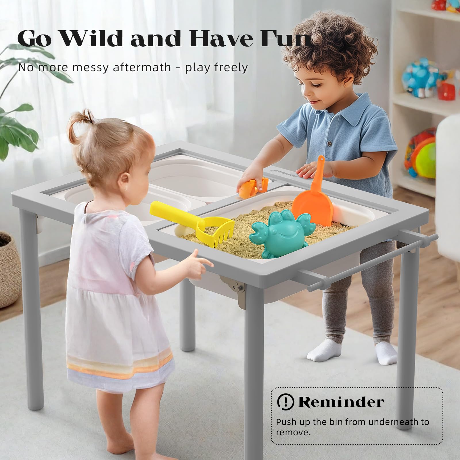 【Child-Safe Design – Rounded Corners & Non-Slip Feet】 Safety is a priority. This sensory table features rounded corners to prevent accidents, while non-slip pads on the table legs ensure stability during use. The non-slip design also protects your floors from scratches and minimizes noise, making it perfect for home or classroom settings
