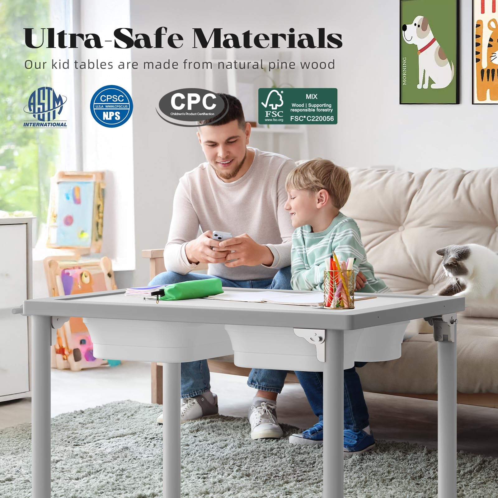 【Durable & Excellent Materials – Safe for Kids】 Crafted from high-quality pine wood and coated with environmental friendly, water-based varnish, this activity table is both safe and built to last. The sturdy yet lightweight design allows kids to move it indoors or outdoors with ease. It’s the ideal gift for children, combining durability, safety, and functionality