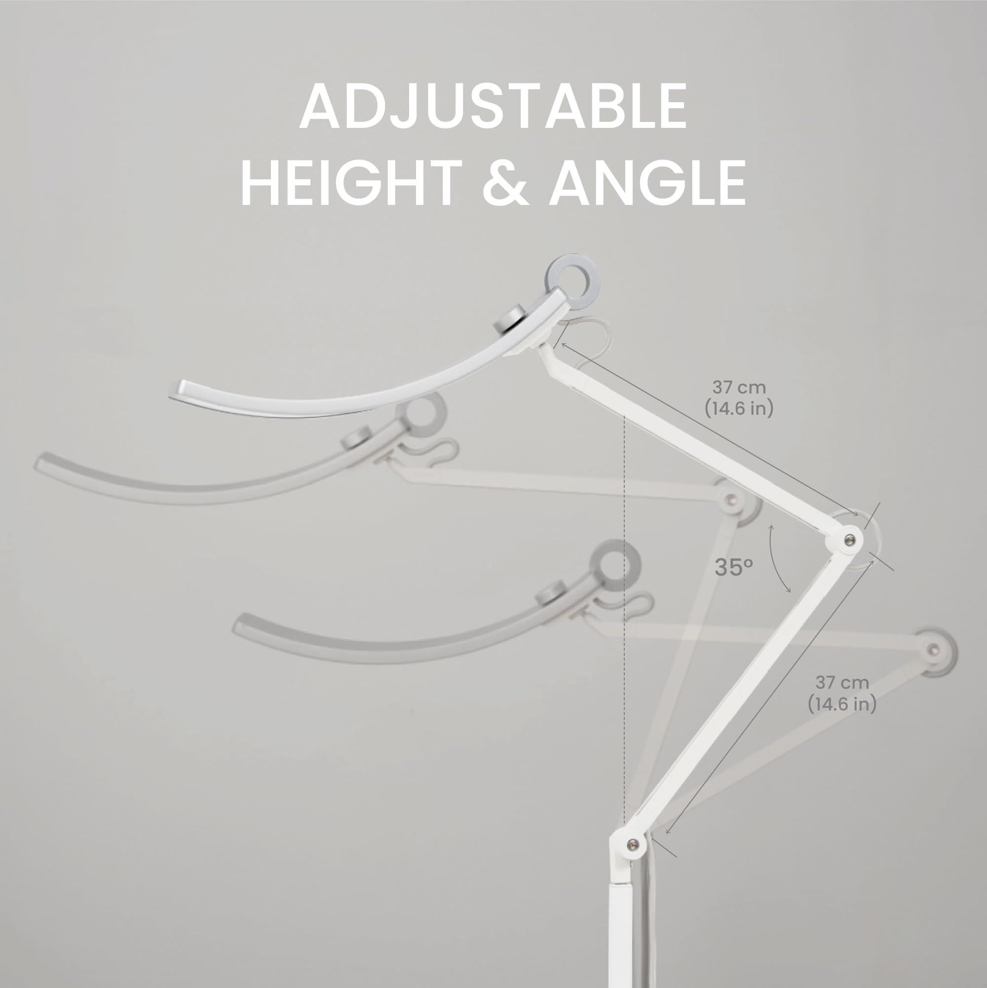 š”ćADJUSTABLE ARM & ANGLEć: With patented ball-joint and a swing arm design, it's super easy to adjust for the perfect lighting angle and the right height you need (55. 5 inches/ 140.9 cm tall Floor Lamp). Additionally, its highly durable torque springs and precise friction control keep it sturdy at any angle.