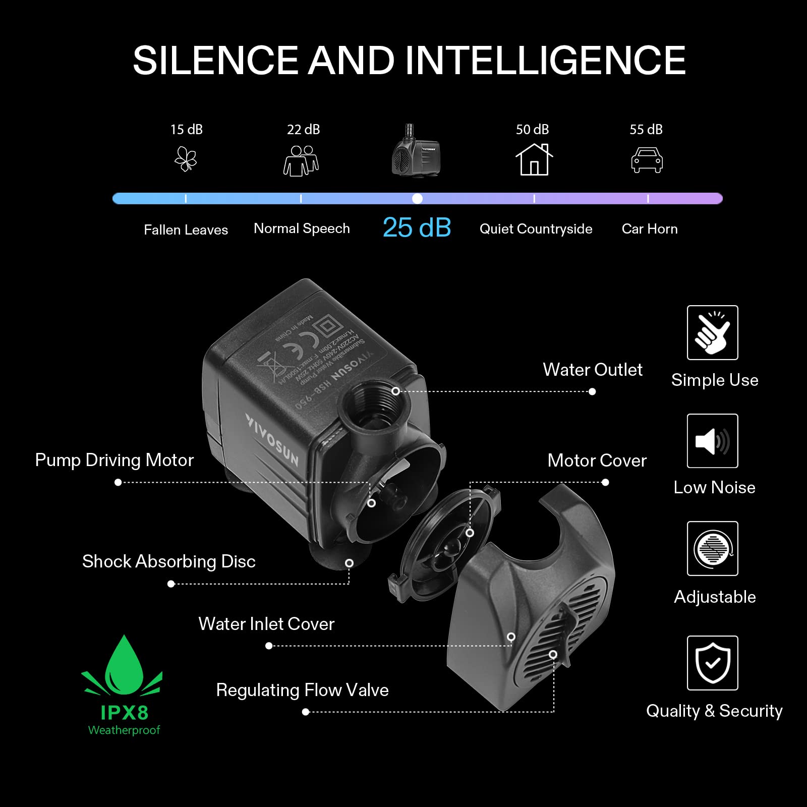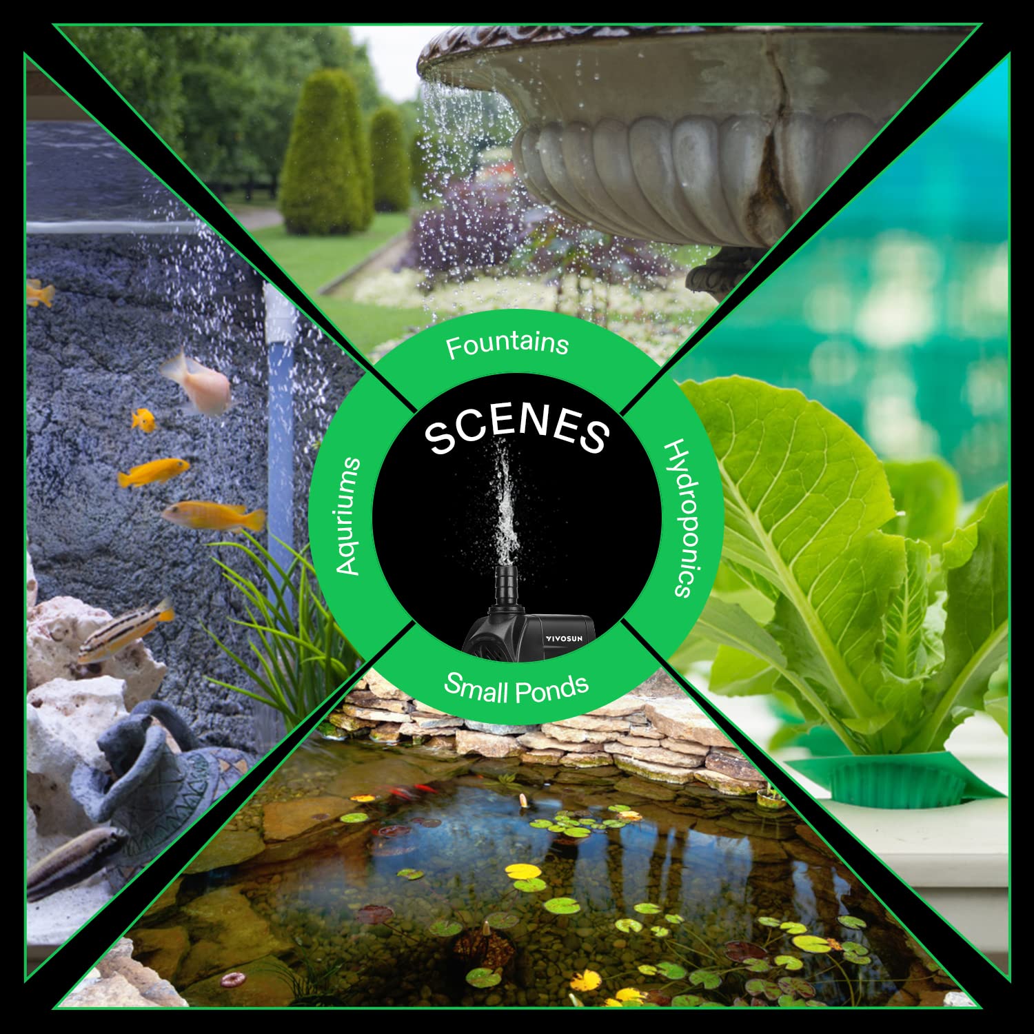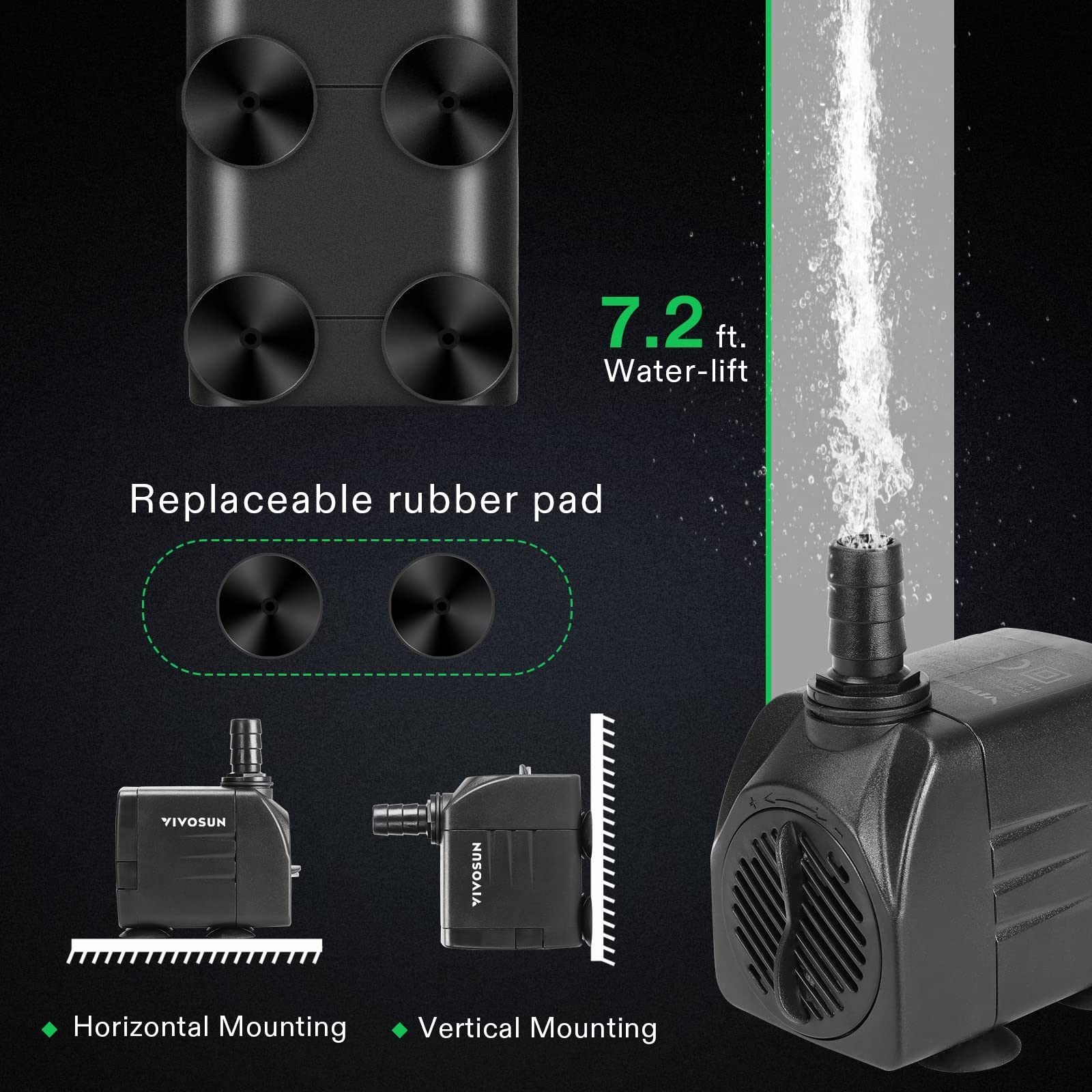 Wide Range of Applications: This high performance energy-efficient pump works great in ponds, fountains, waterfalls, hydroponic systems, and irrigation systems and so on; Working Temperature: 39℉ to 95℉