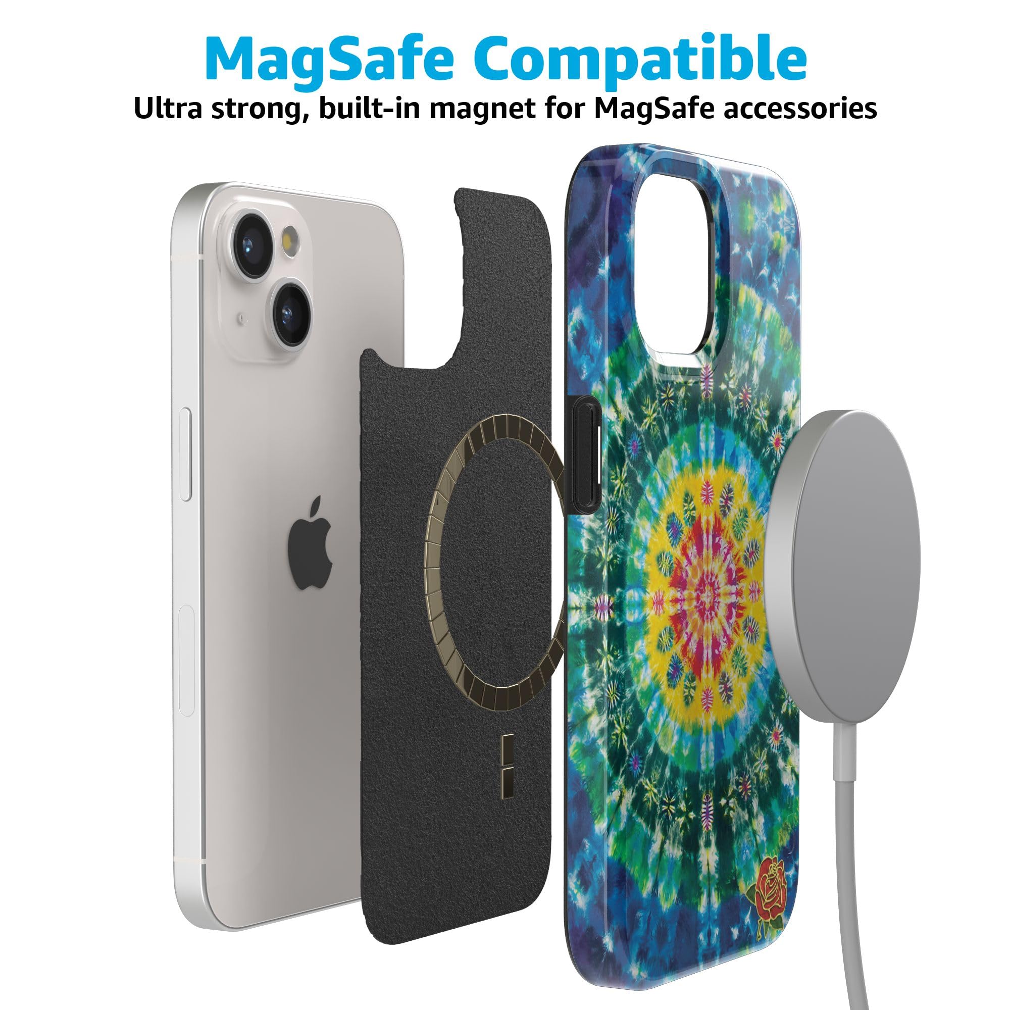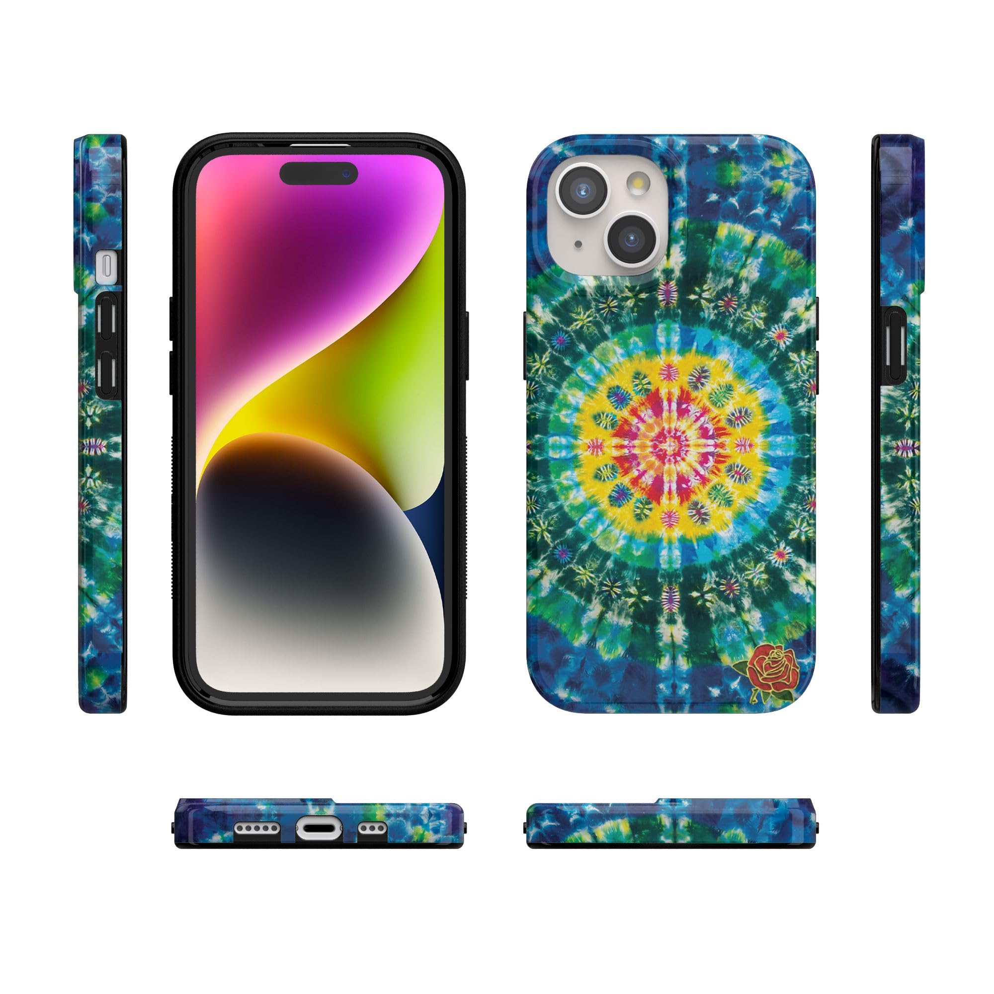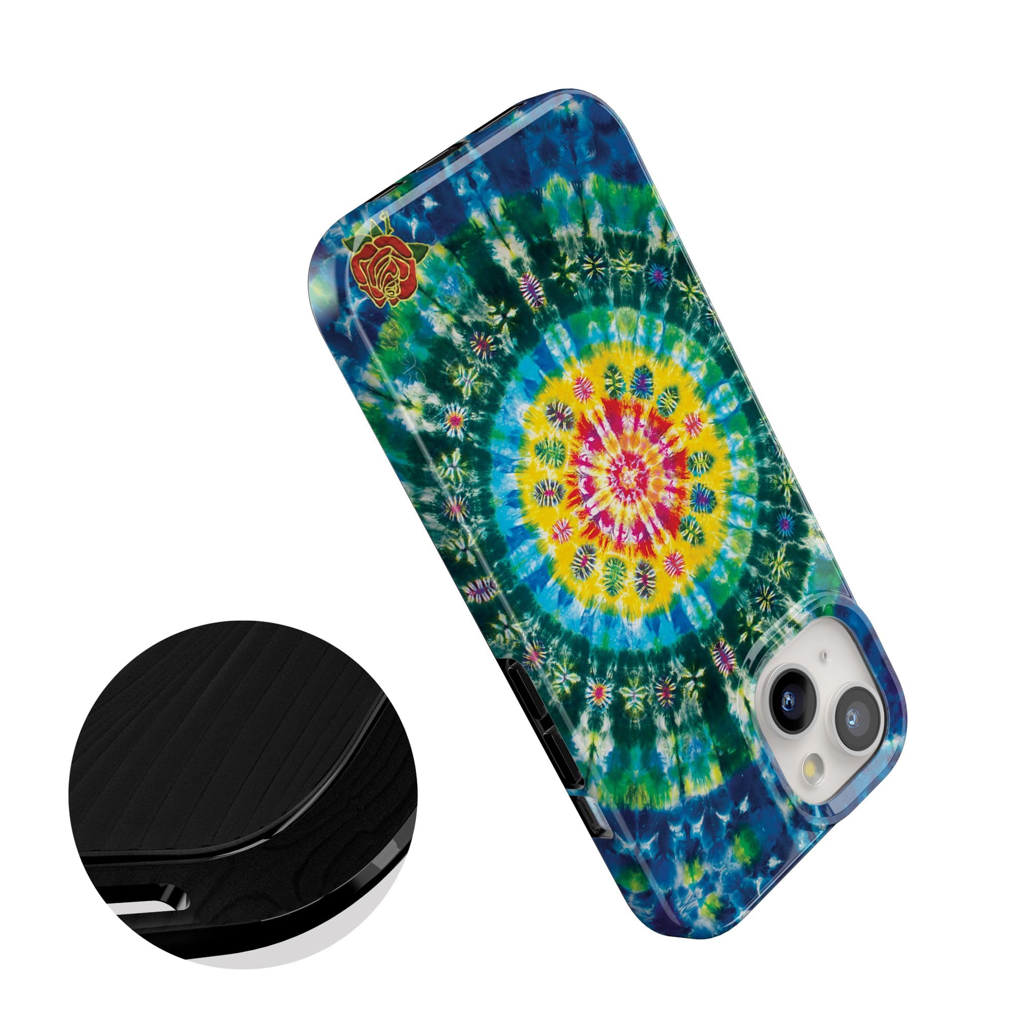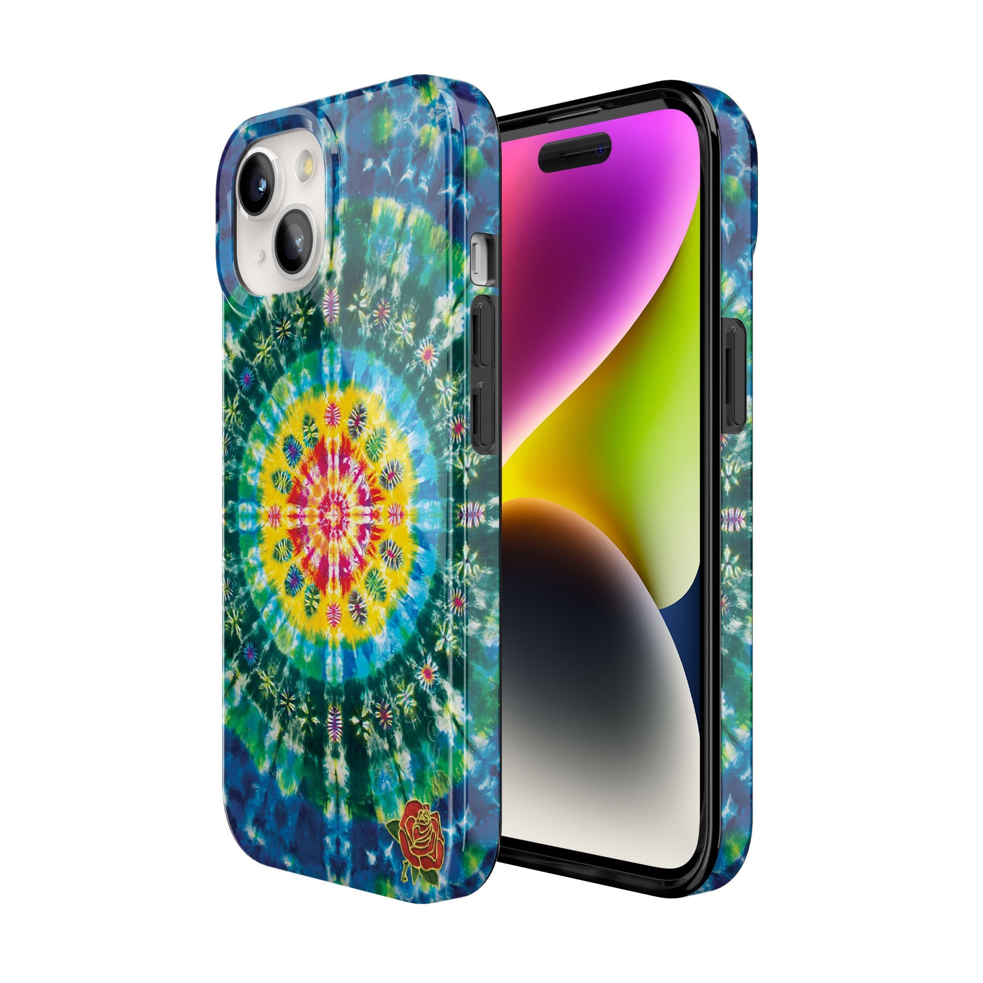 As a prominent band during the counterculture movement, the Grateful Dead is widely known for its use of tie dye in its branding. Embrace your Deadhead fan status with this Veneta Tapestry Tie Dye phone case. It features an intricate design that begins with a bright yellow circle filled with geometric shapes. From there, the image radiates out into green and blue circles, creating a unique tie dye effect that your friends will love. This case will complement any everyday work or casual outfit. Or, you can pair it with a hippie-inspired outfit at your next Coachella event or another music festival. When you slip this accessory onto a compatible iPhone, you can rest assured that it will be protected from sudden tumbles and drops. We offer the Veneta Tapestry case as part of the Classic and Bold Collections, so you can choose the one that meets your needs. Bring your own beautiful Veneta Tapestry to your phone today!