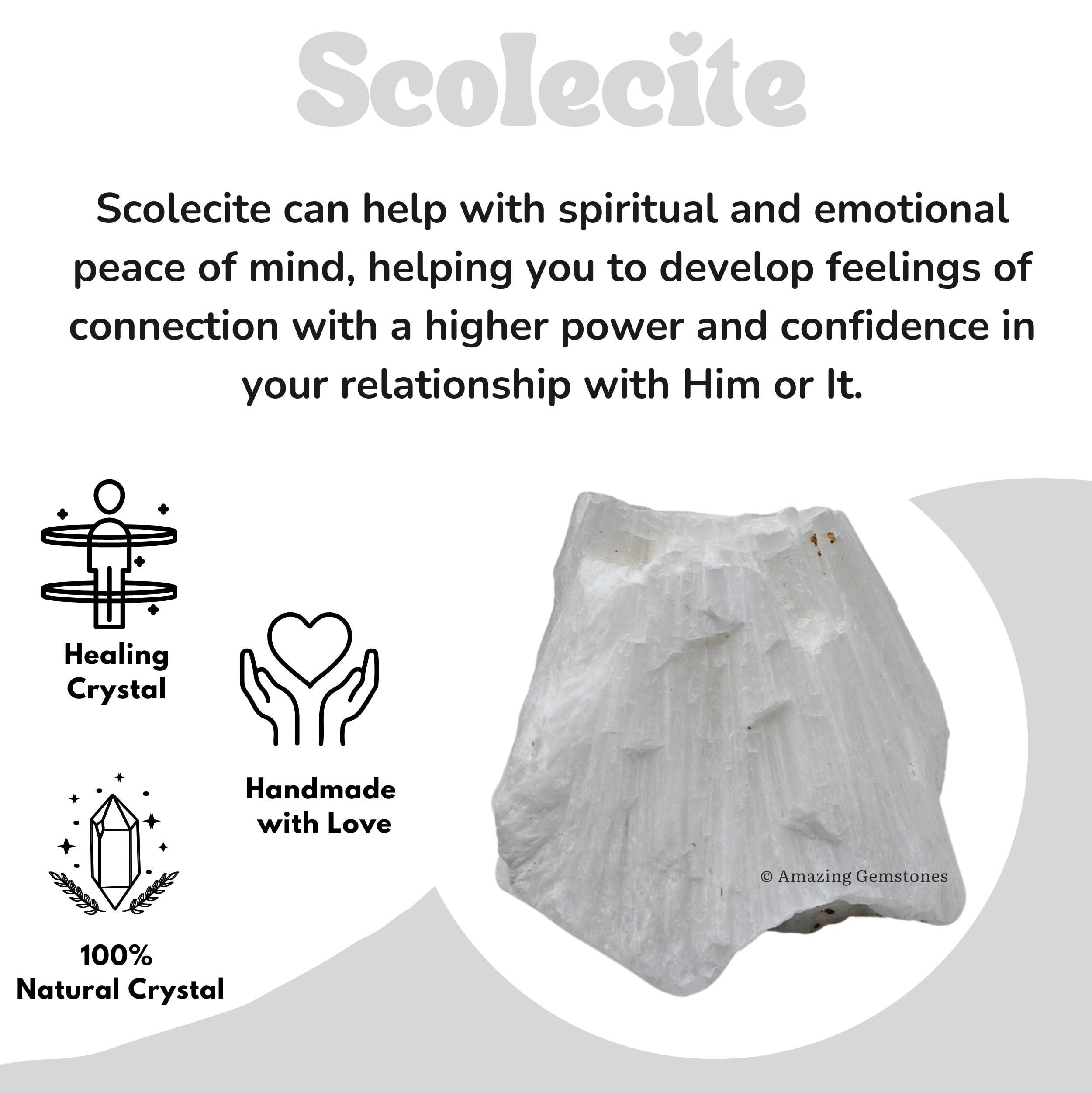 Natural - You will receive authentic raw stones crystals, scolecite can help with spiritual and emotional peace of mind, helping you to develop feelings of connection with a higher power and confidence in your relationship with Him or It.