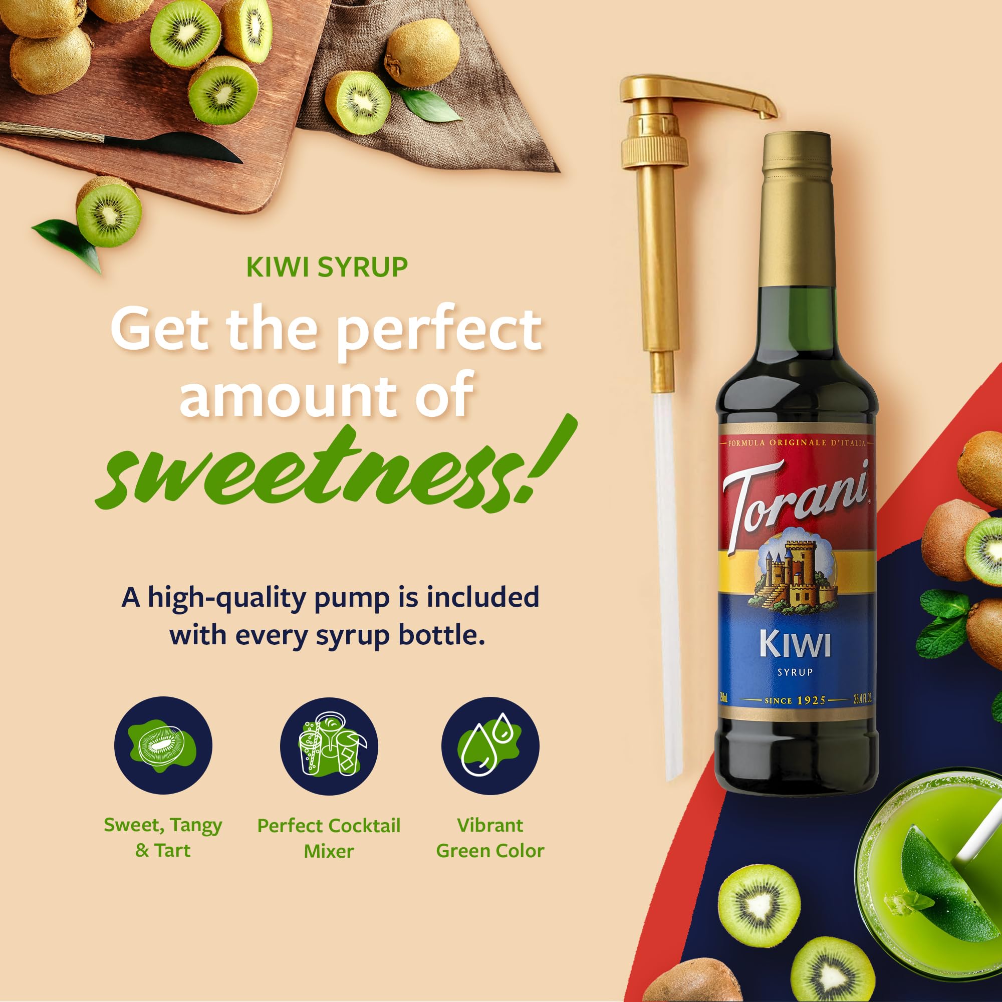 CONVENIENT & MESS-FREE: The large 750 ml Torani Kiwi Syrup bottle, made of BPA-free plastic, comes with a high-quality pump for perfect portion control and effortless sweetening.