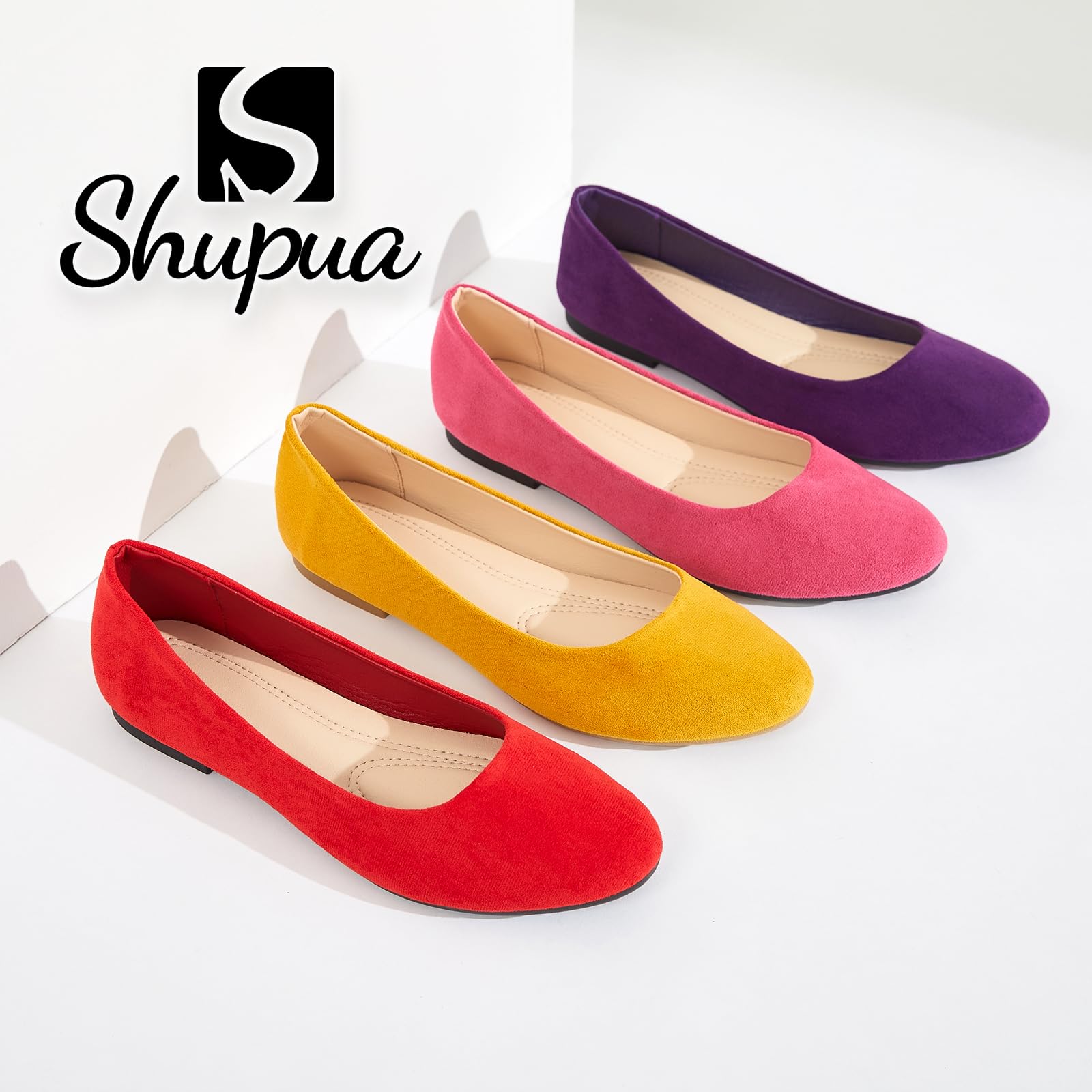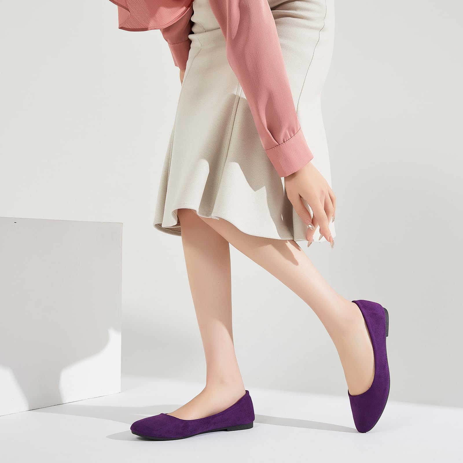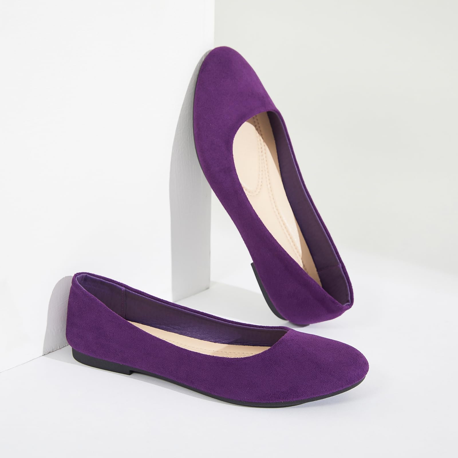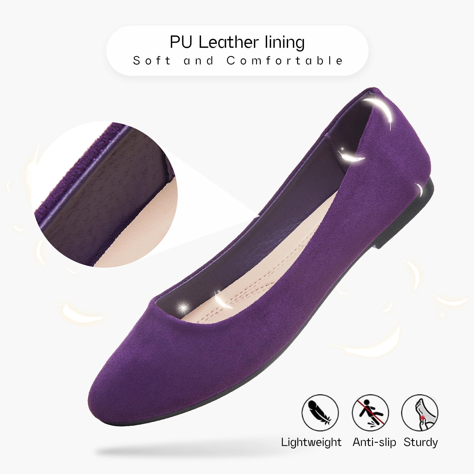 2.Elegant Suede Upper: The upper of ballet flats for women is made of suede fabric which looks elegant and fashionable. These upper material of womens flats is breathable which can be worn in summer.