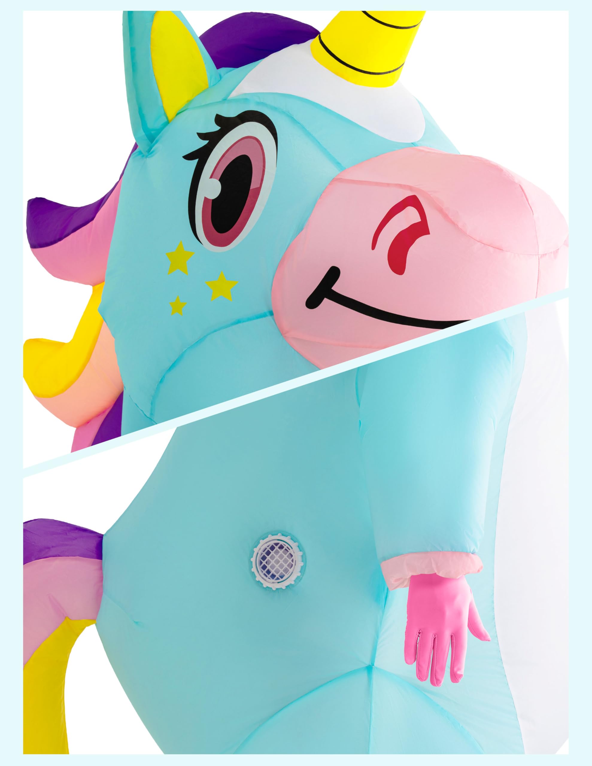 Versatile Occasions: Perfect for Halloween dress-ups, Halloween costume parties, Halloween night events, cosplay parties, theme parties, stage performances, and role-play scenarios. Let your imagination run wild and bring the enchanting world of unicorns to life with this inflatable costume. It's time to embrace magic and captivate everyone around you.