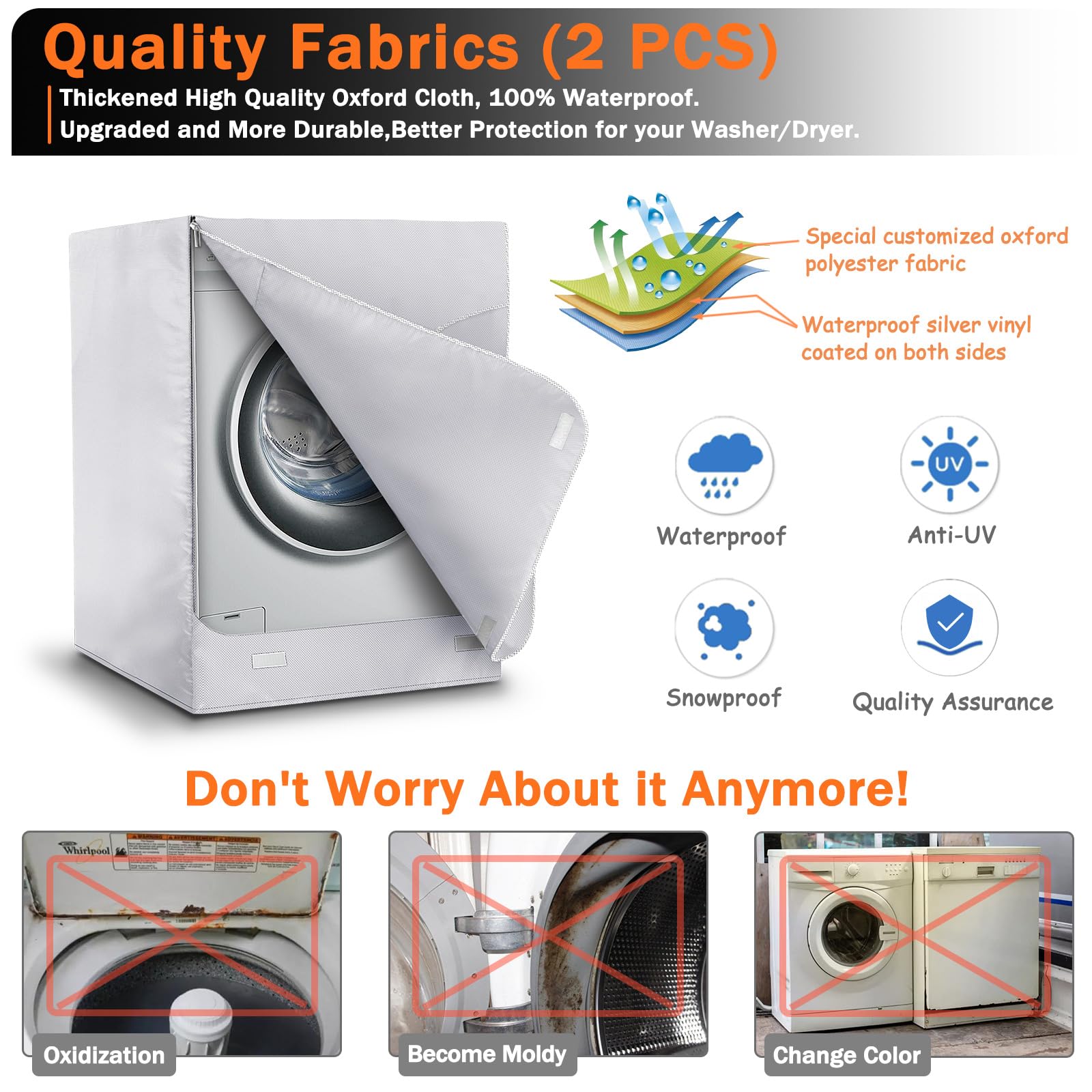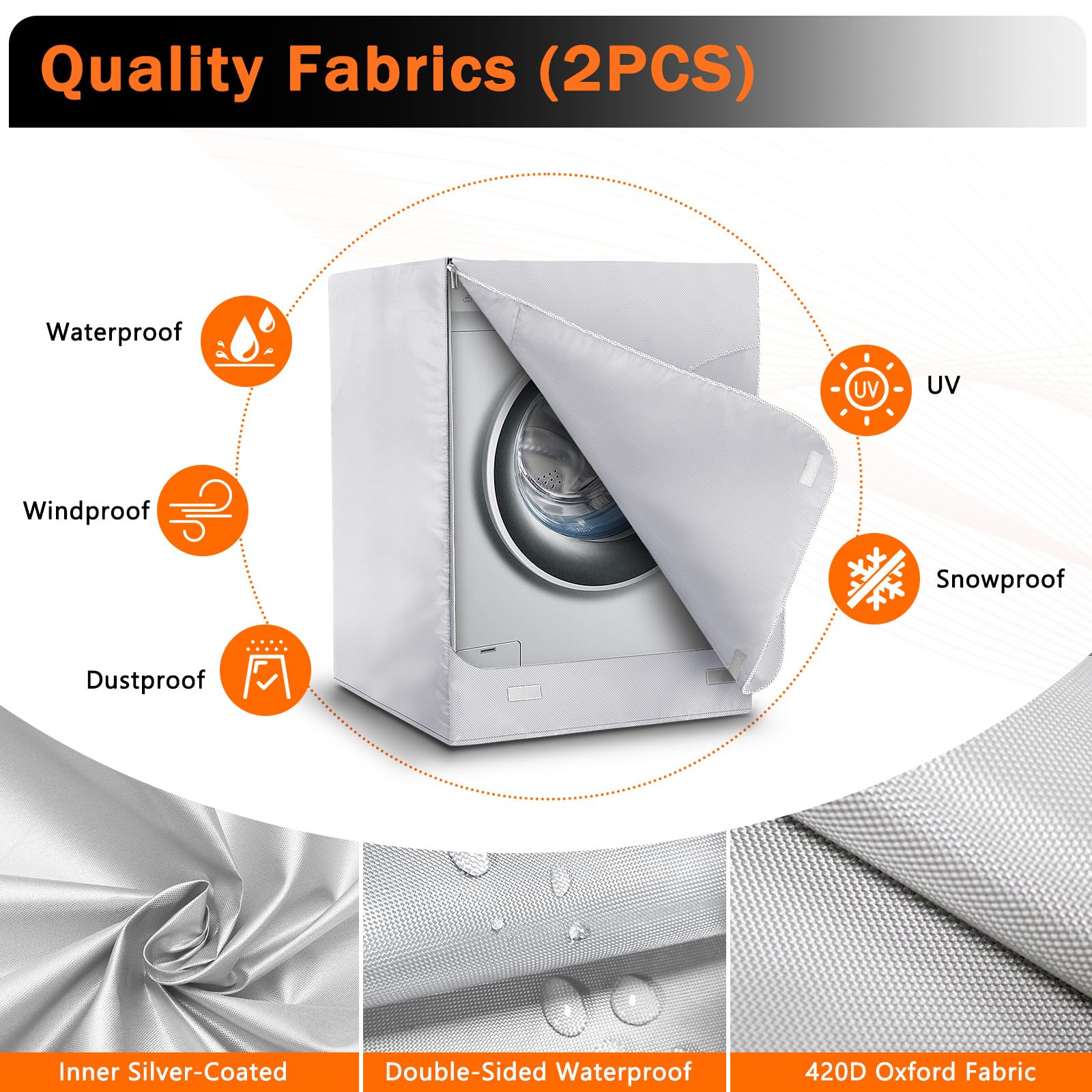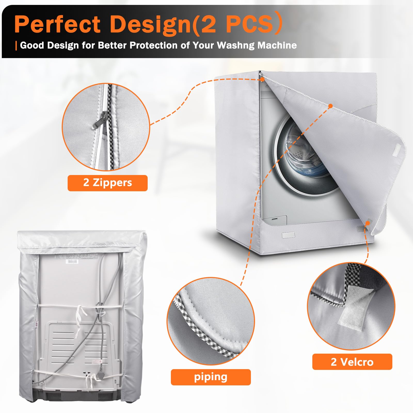 【Easy to Use】: Front load washer/dryer cover designed with zipper and velcro that lets you open the machine without taking away the cover, very simply and convenient.