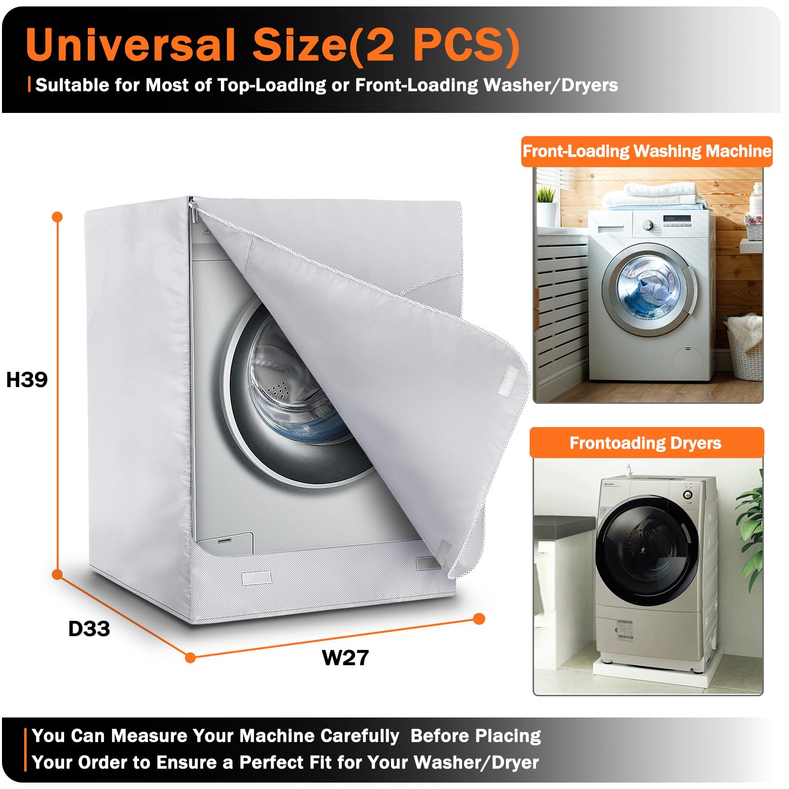 【Size】: H39" x D33" x W27", please measure your washer or dryer before purchasing. this washing machine cover maximum protect the machine keep away from water, dust or paint.